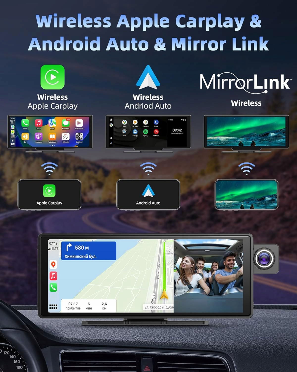 - Inteligentny bezprzewodowy Carplay Driveplay Bezprzewodowy wyświetlacz apple carplay i android auto łatwo łączy się ze smartfonem, można uzyskać dostęp do aplikacji smartfona, map, muzyki i innych funkcji na wyświetlaczu. Dzięki Airplay i Android Cast można płynnie łączyć i synchronizować wszystkie treści ze smartfona z ekranem dotykowym.