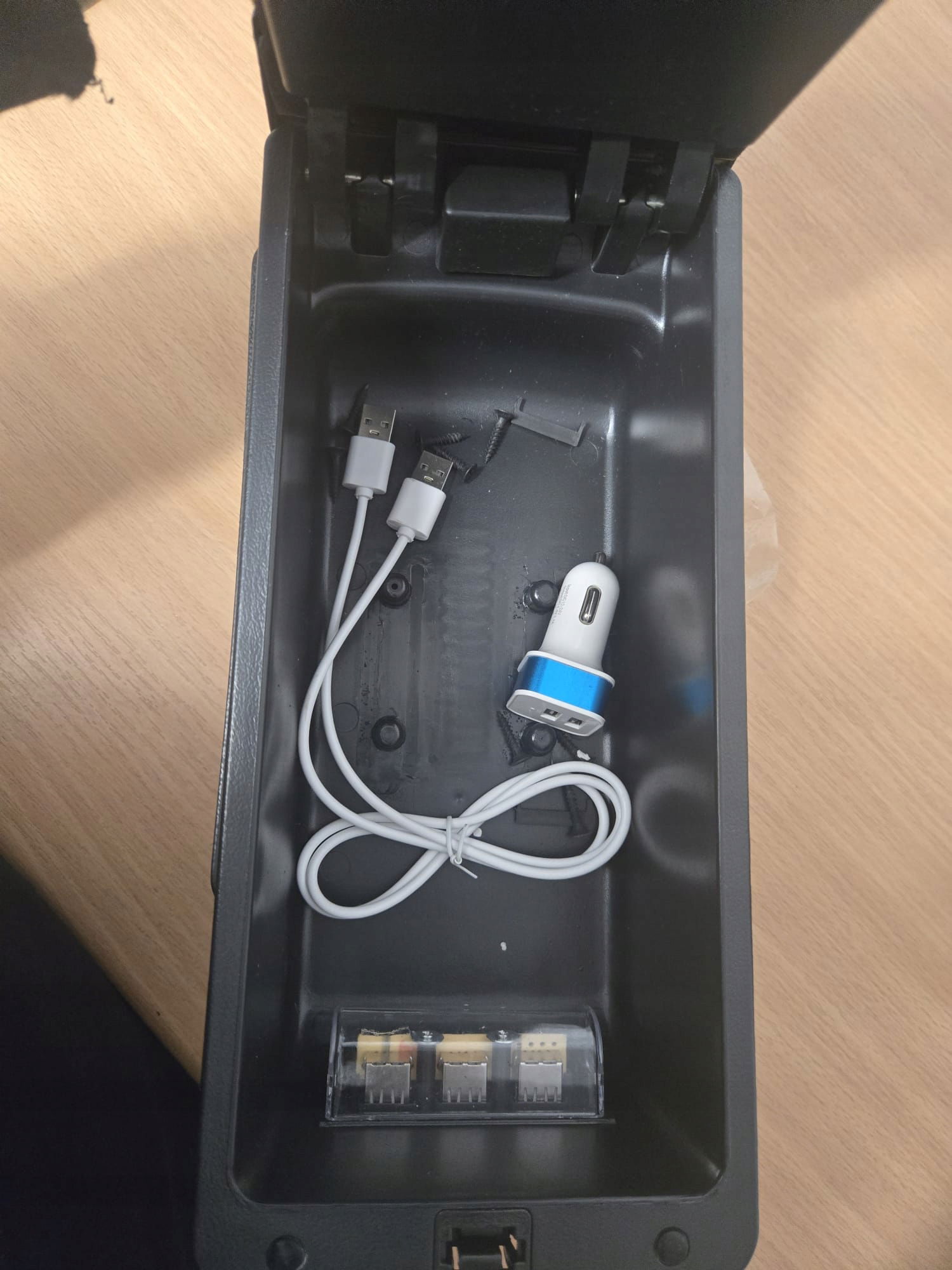 • Zawartość zestawu: podłokietnik z portami USB, elementy montażowe