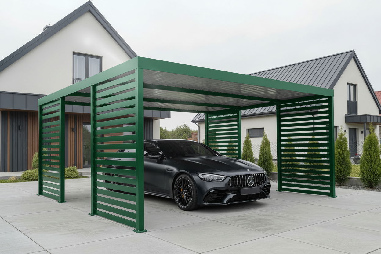 Carporty stalowe to praktyczne i trwałe rozwiązanie dla ochrony samochodu przez cały rok. Solidna konstrukcja zapewnia doskonałe zabezpieczenie przed śniegiem, wiatrem i intensywnymi opadami deszczu. Zabezpiecza także przed gradem, opadającymi liśćmi czy żywicą spadającą z drzew i odchodami ptaków. Carport chroni samochód przed promieniowaniem UV, które powoduje blaknięcie lakieru i niszczenie elementów wnętrza. Dzięki temu samochód jest mniej podatny na uszkodzenia i zabrudzenia a codzienne użytkowanie staje się wygodniejsze.