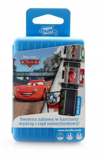 Cars. Auta Shuffle to bardzo ciekawa pozycja dla dzieci, to również całkiem fajna pozycja na chwilę gry w składzie rodzice-dzieci. Interesując jest wykonanie samochodów, którymi jeździmy otrzymujemy plastikowe karty, którym należy „wypchnąć” nóżki. W ten sposób dostajemy samochód, który jeździ po torze (ponad torem), a mimo wszystko wciąż jest to karta.