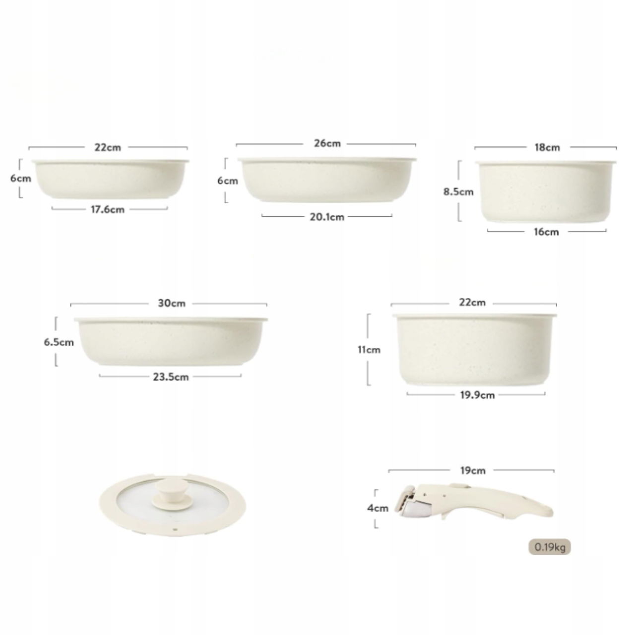 Carvan 8 sztuk naczyń nieprzywierające patelnia rondel zdejmowany uchwyt