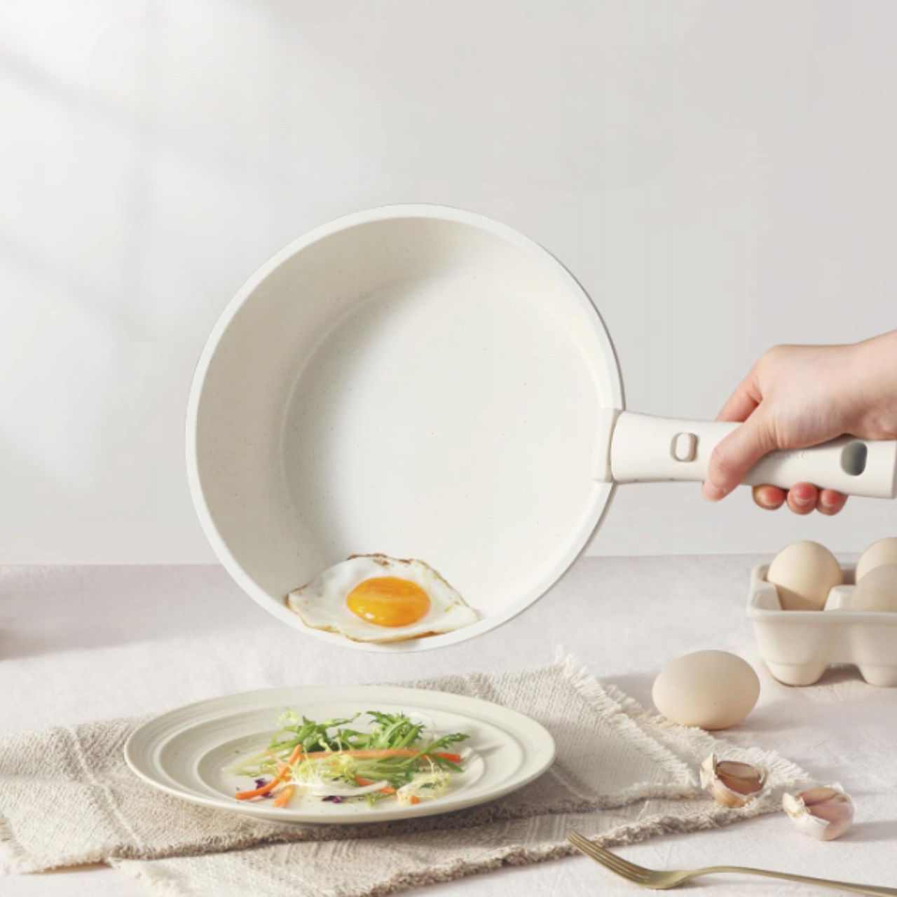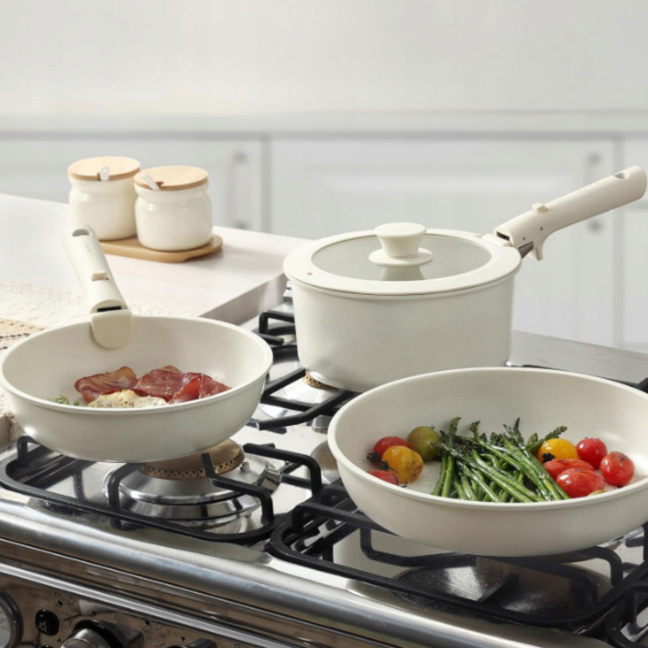 Zestaw obejmuje patelnie i rondle w różnych rozmiarach, dzięki czemu masz wszystko pod ręką – od przygotowywania sosów, przez smażenie, aż po gotowanie większych porcji.
