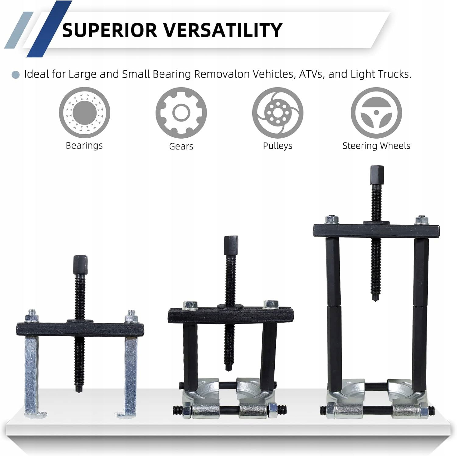 Wszechstronne zastosowanie, idealnie nadaje się do usuwania przekładni pojazdu, kierownic i kół pasowych, do usuwania łożysk, kół zębatych, tulejek wałów, pierścieni wewnętrznych i innych części