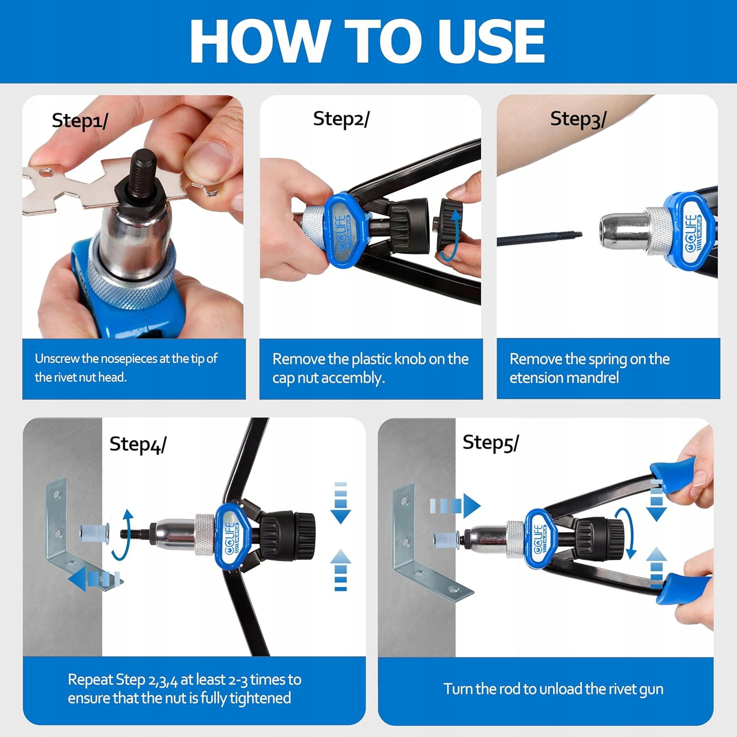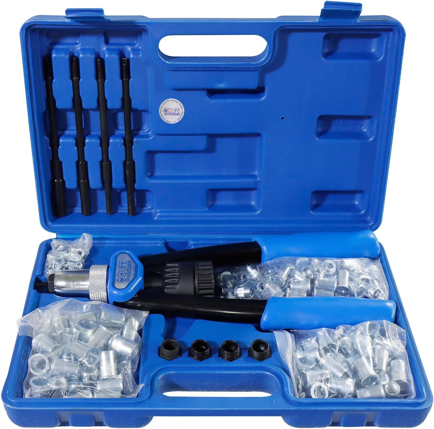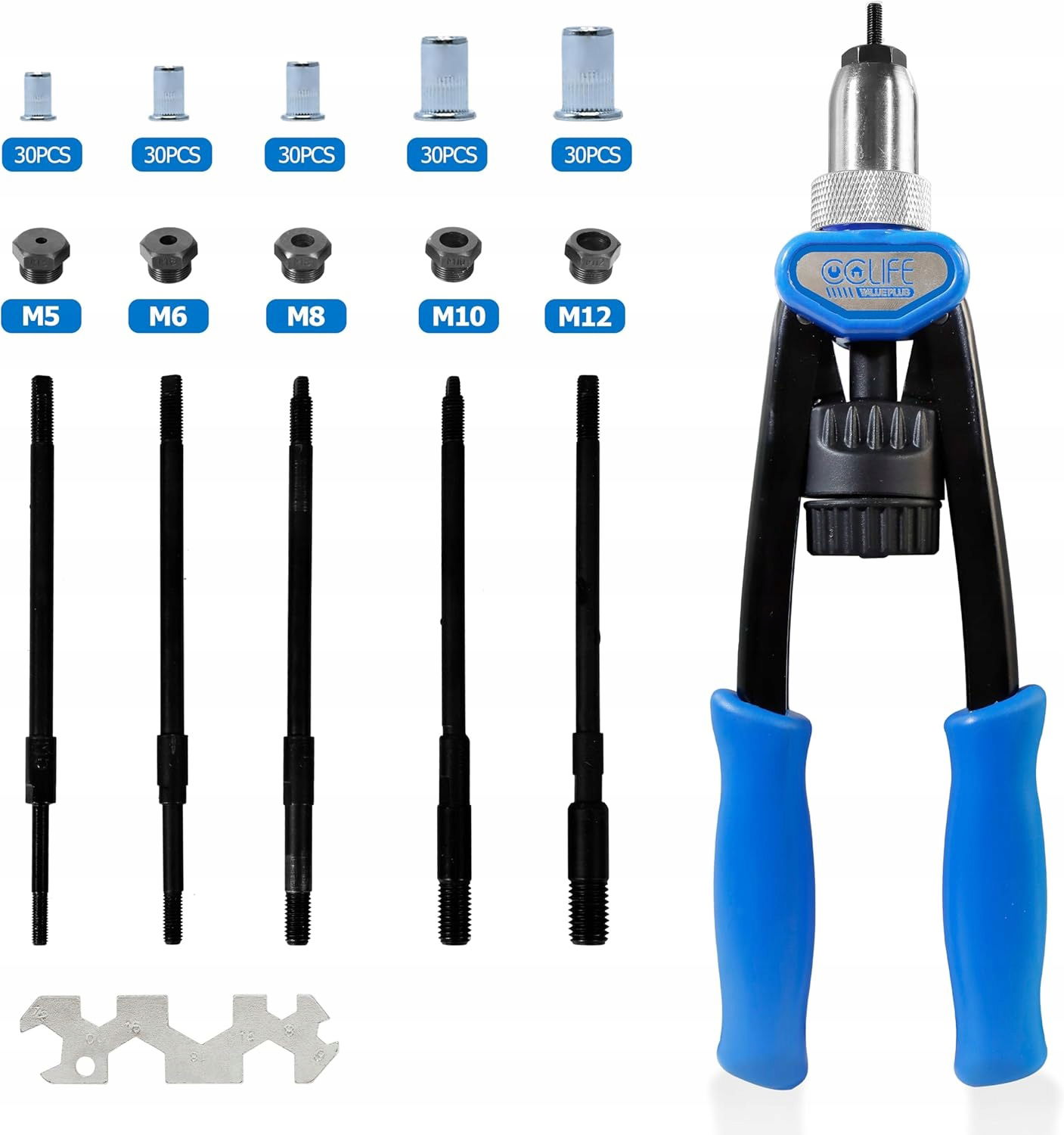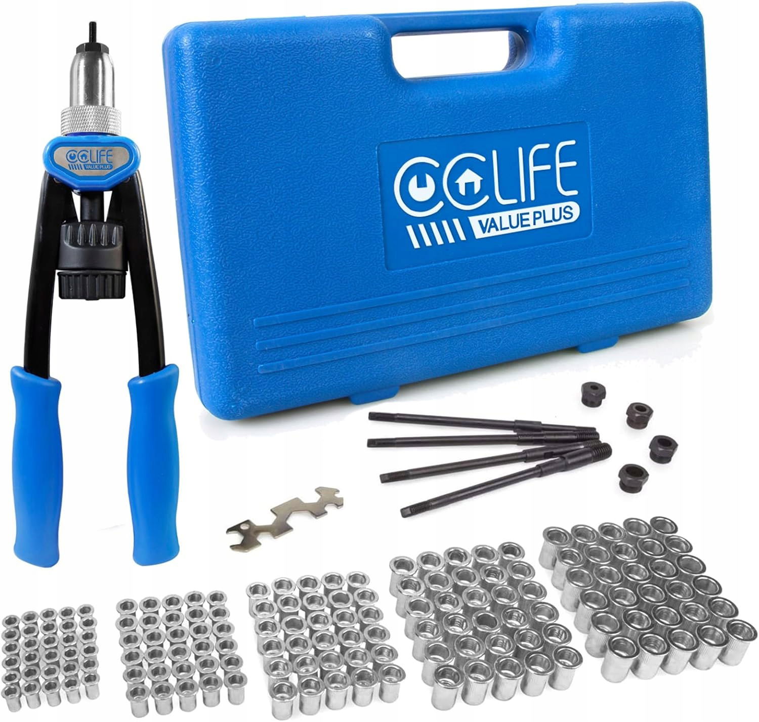 CCLIFE Profesjonalny zestaw narzędzi do nitowania M5-M12 + 150 nitonakrętek
