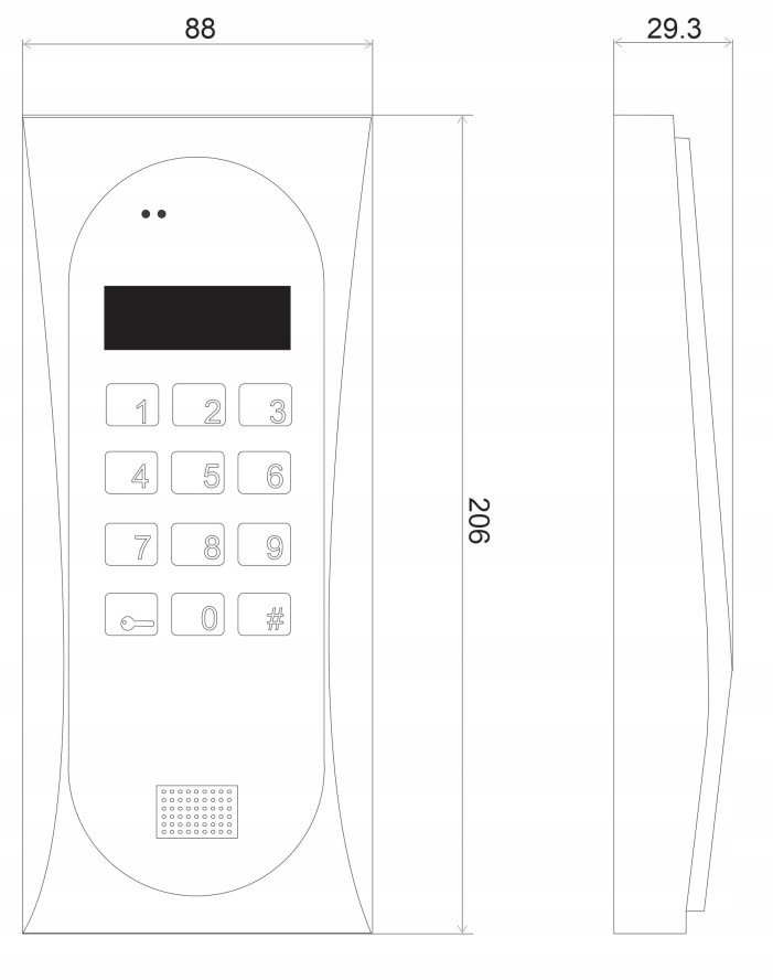 Panel bramowy posiada wbudowaną klawiaturę numeryczną, z poziomu której można w łatwy sposób wywołać konkretnego lokatora - wystarczy wprowadzić numer lokalu i po 3 sekundach panel zacznie dzwonić. Z poziomu klawiatury numerycznej, lokator może również w łatwy sposób sterować elektrozaczepem. Po wprowadzeniu indywidualnego, 4-cyfrowego kodu otwarcia, elektrozaczep zostanie zwolniony. Panel udostępnia również 5 kodów administratora systemu i 1 kod instalatora.