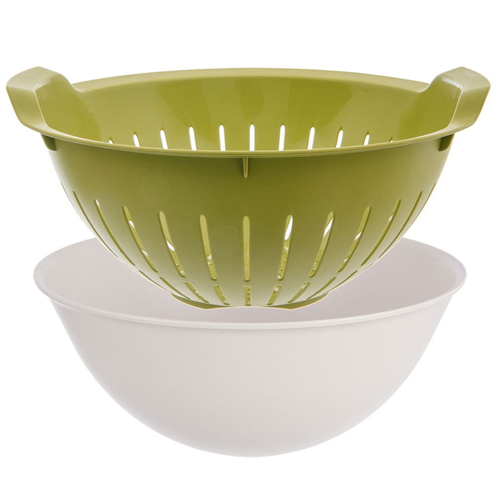 Zestaw miska i cedzak 2w1 - Praktyczny komplet cedzaka z miską, ułatwia płukanie i odsączanie owoców, warzyw, makaronu czy ziemniaków. Cedzak można wyjąć, wypłukać produkty, a następnie włożyć go z powrotem do miski, w której swobodnie odcieknie nadmiar wody. Miska ma średnicę 25 cm, wysokość 10,5 cm i pojemność 3 l, cedzak ma wymiary: 26 x 25 x 12 cm. Produkt z serii Ela.
