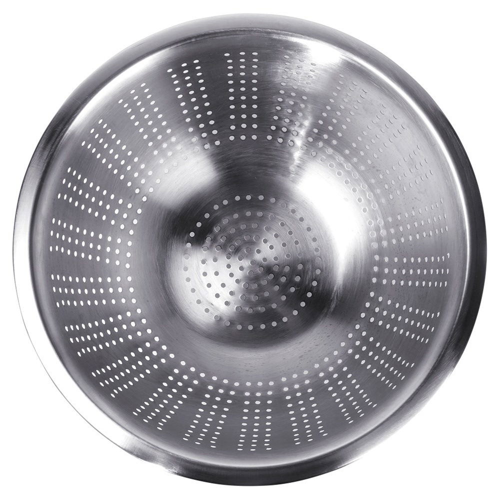 PRAKTYCZNY - Uniwersalny cedzak w kształcie miski. Przydatny podczas mycia owoców, warzyw, odcedzania makaronu, czy klusek. Cedzak ma średnicę 28 cm i wysokość 12,5 cm.