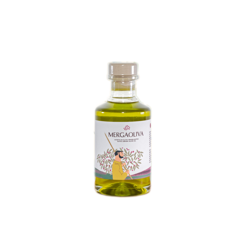 Oliwa z Oliwek Extra Virgin (z pierwszego tłoczenia) otrzymywana z dojrzałych oliwek (fioletowych) odmiany HOJIBLANCA. Zbiór odbywa się w pierwszych dniach listopada, metodą ekstrakcji na zimno, w ekologicznej olejarni Mergaoliva.