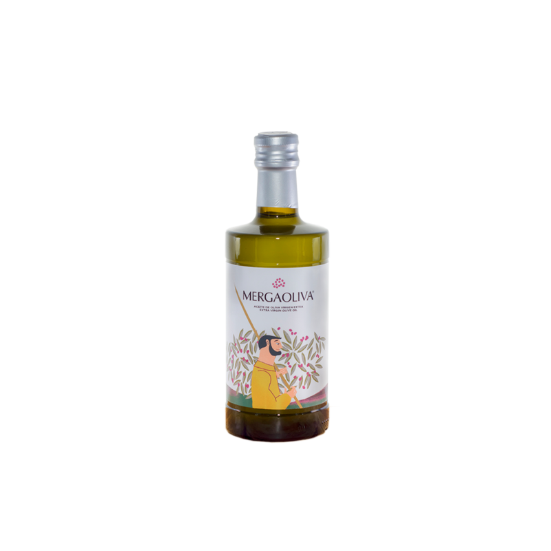 Oliwa z Oliwek Extra Virgin (z pierwszego tłoczenia) otrzymywana z dojrzałych oliwek (fioletowych) odmiany HOJIBLANCA. Zbiór odbywa się w pierwszych dniach listopada, metodą ekstrakcji na zimno, w ekologicznej olejarni Mergaoliva.