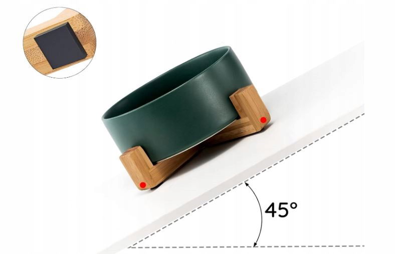 Wysokiej jakości drewniany stojak – każda miska jest umieszczona na wyjątkowym bambusowym stojaku, który podnosi miskę bliżej do zwierzaka i zapewnia mu komfort podczas jedzenia.