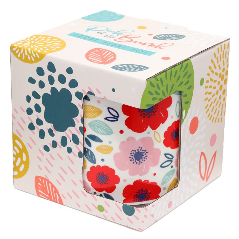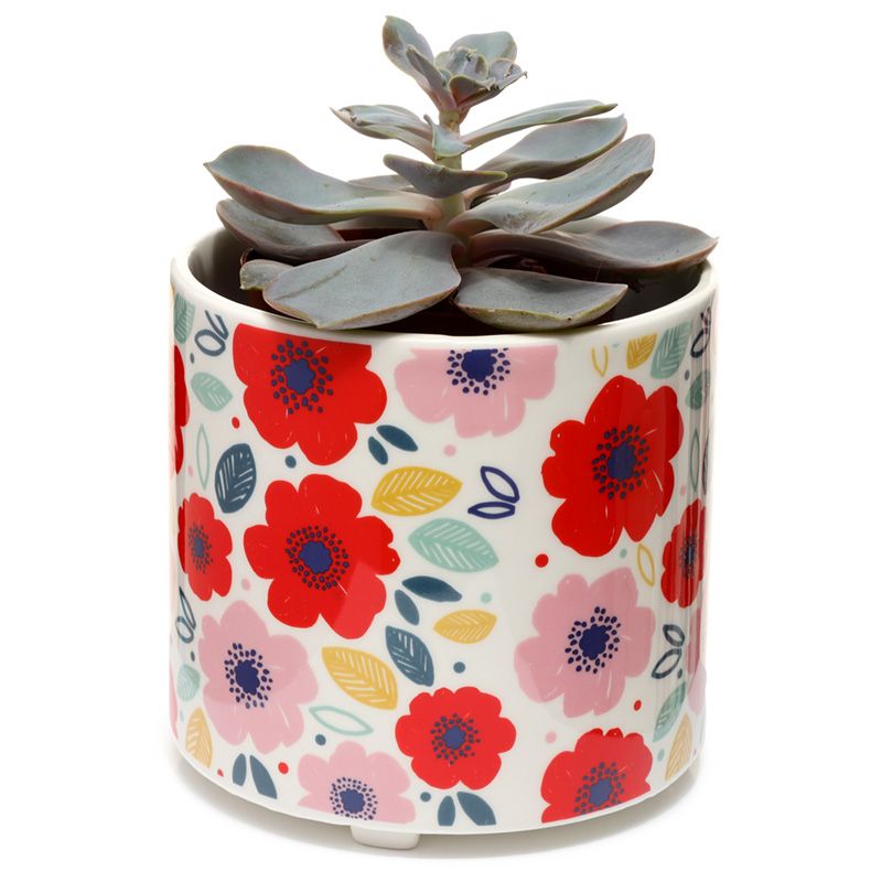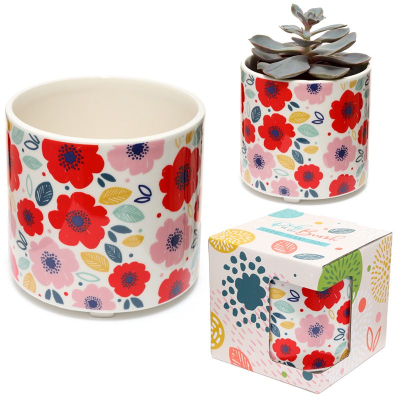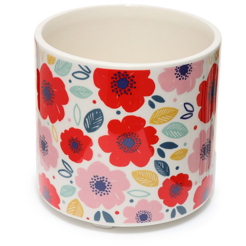 Ceramiczna osłonka, doniczka z serii "Zbierz Bukiet" ozdobiona motywem czerwonych i różowych maków. Zapakowana w prezentowe opakowanie. Piękny prezent dla miłośników roślin domowych.