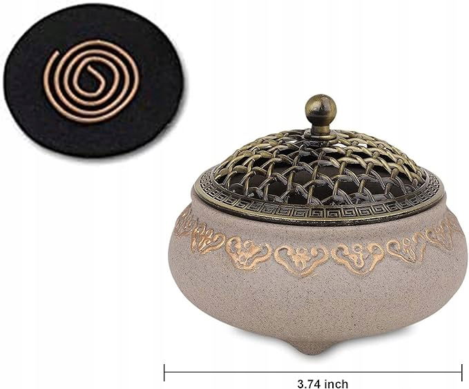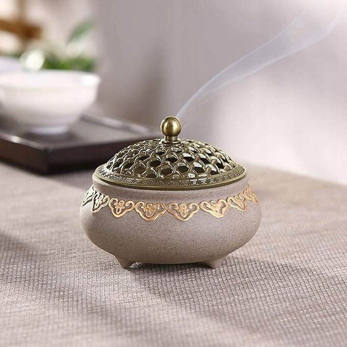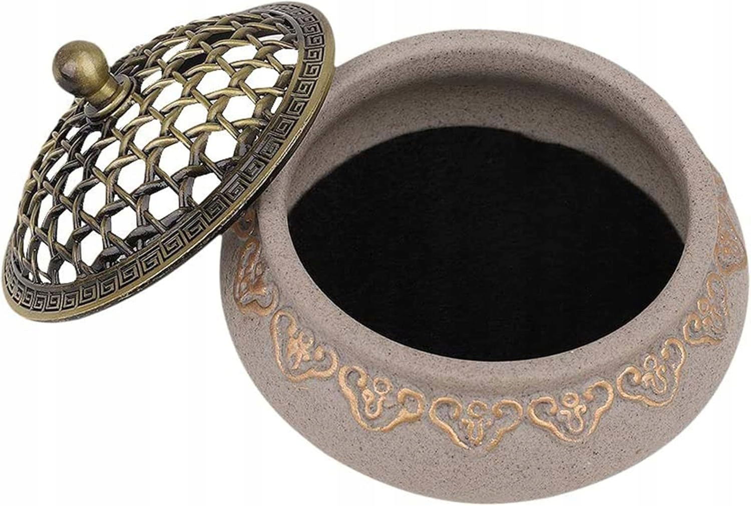 Ceramiczny pojemnik na kadzidełka, retro uchwyt na kadzidełka, wykwintny porcelanowy pojemnik na kadzidełka, pojemnik na kadzidełka, miska na kadzidełka do domu, biura, jogi, dekoracja z metalową pokrywką i matą ognioodporną