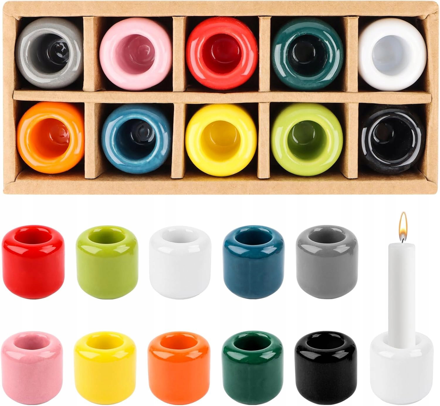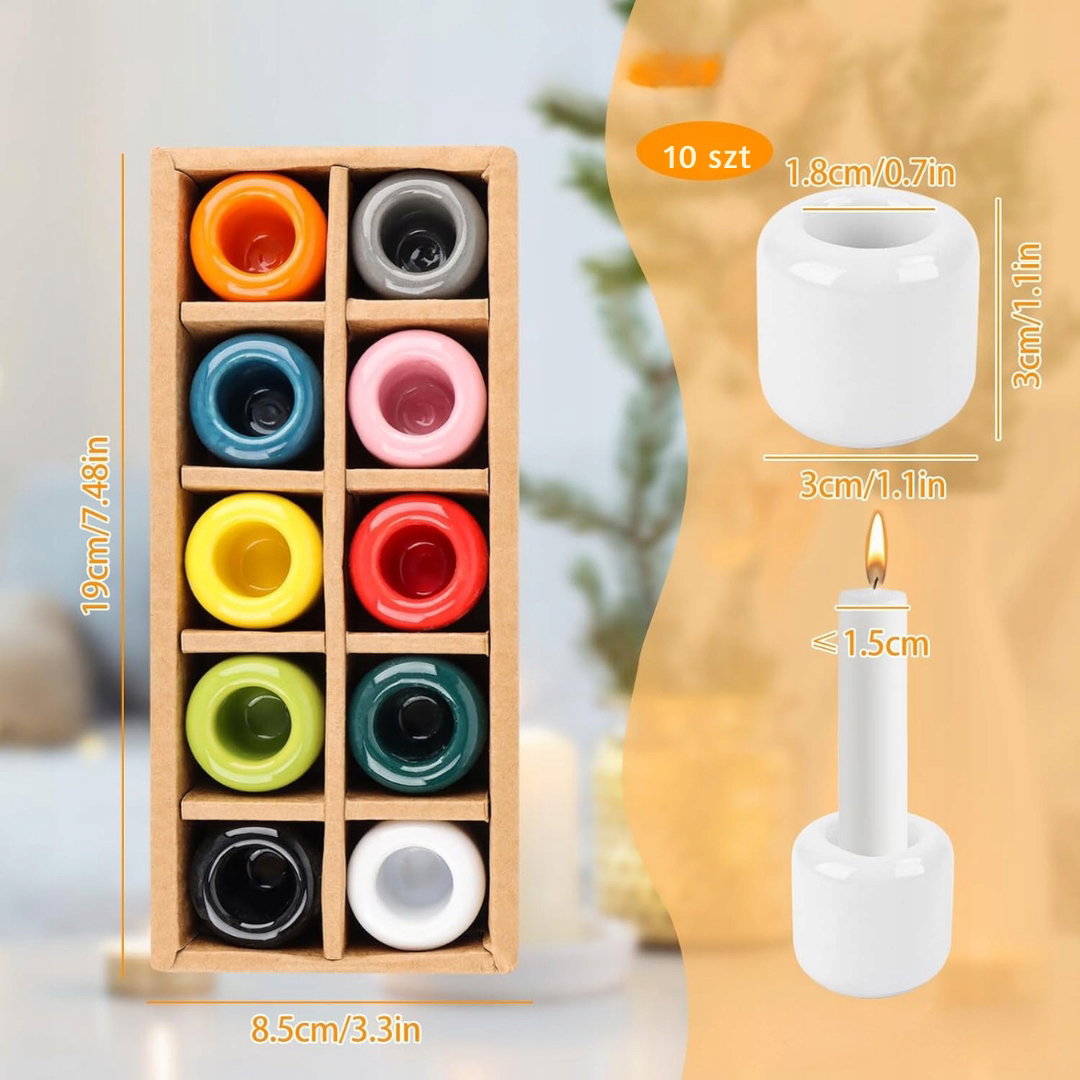 Ceramiczny świecznik na świece, zestaw 10 sztuk otwór 1,8cm, kolorowe