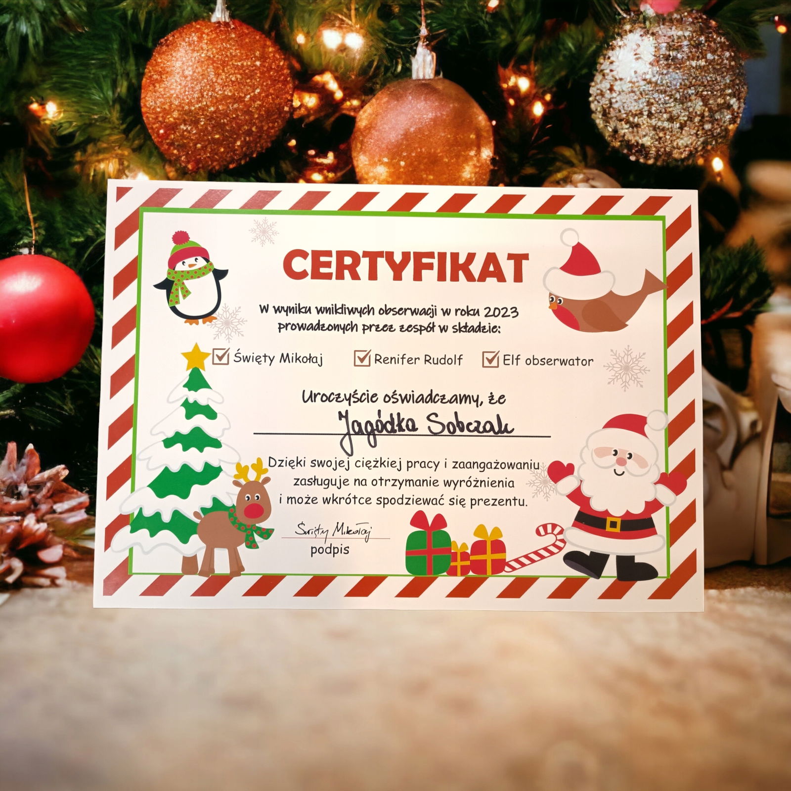 Będzie świetną pamiątką prezentu na mikołaja, rozmiar A4 sprawia, że dyplom jest bardzo poręczny.