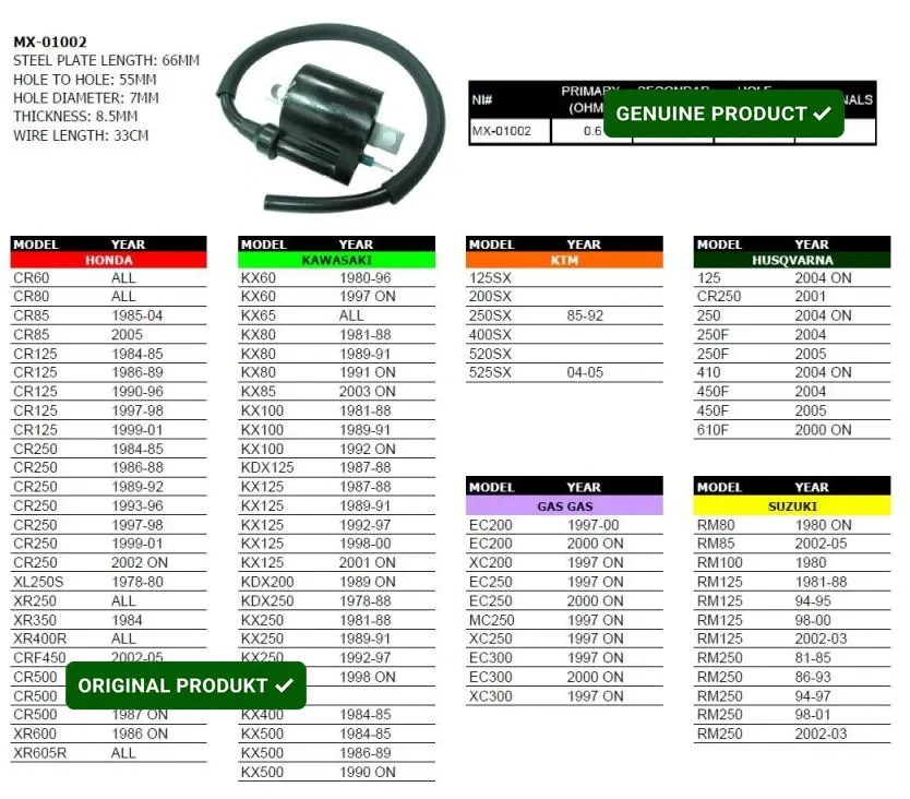 Cewka zapłonowa Honda/Kawasaki/Suzuki/Yamaha/KTM/Husqvarna Psychic | MX-01002