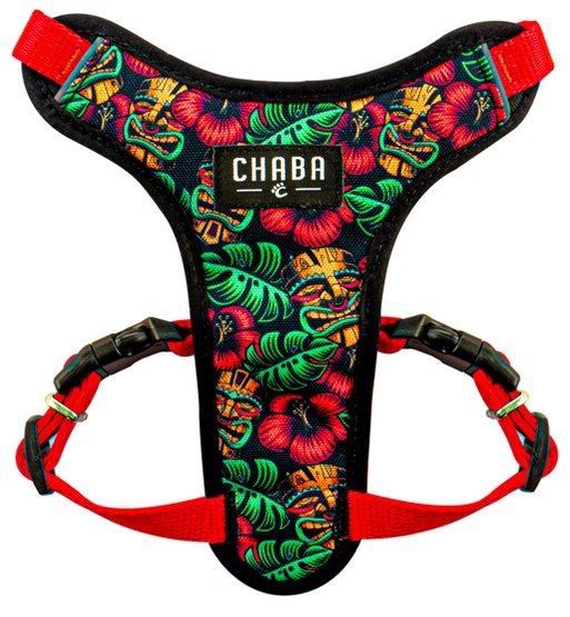 Chaba szelki Guard Comfort Story bezuciskoweJednym z najbardziej uniwersalnych, pożytecznych i funkcjonalnych akcesoriów, które są niezastąpione podczas spacerów z czworonogiem, są szelki typu guard. Ich nazwa – guard, czyli strażnik, obrońca, protektor – jest nieprzypadkowa: szelki tego typu chronią i zapewniają bezpieczeństwo na wielu rozmaitych płaszczyznach.Szelki guard złożone są z dwóch obręczy oraz dwóch pasów, które można z łatwością regulować, co umożliwia elastyczną personalizację produktu i idealne dostosowanie go do sylwetki i siły zwierzęcia. W przypadku szelek guard zabudowanych jeden z pasów – w miejscu, gdzie nacisk taśmy na ciało jest największy – obszyty jest warstwą przyjemnego, nieobcierającego materiału. Jest on wodoodporny oraz wyposażony w specjalną siateczkę zwiększającą komfort użytkowania i umożliwiającą optymalną cyrkulację powietrza. Dodatkowo posiada wszyte elementy odblaskowe.Zabudowane szelki guard Chaba posiadają aż 4 -stopniowy system regulacji, umożliwiający dostosowanie ich do potrzeb zwierzęcia w sposób szybki, intuicyjny i niestresujący, i to bez względu na to, jaką budową charakteryzuje się pies. Ich niezaprzeczalnym atutem jest także specjalny krój, który nie pozwala na przeciążenie kręgosłupa, a także zapobiega otarciom. Szelki te idealnie sprawdzają się w przypadku zwierząt ciągnących, wyrywających się, a także strachliwych, które mają tendencję do nagłych, gwałtownych ruchów – budowa szelek nie pozwala na wyswobodzenie się, a jednocześnie nie powoduje dyskomfortu u ciągnącego, ruchliwego psa. Z uwagi na konstrukcję, miły w dotyku, nieuczulający materiał oraz wodoodporne elementy szelki te świetnie sprawdzają się zarówno podczas krótkich spacerów wokół domu, jak i długich wypraw wakacyjnych. Duża stabilność zapobiega przesunięciom, jednocześnie nie krępując ruchów i zapewniając psiakowi wygodę oraz swobodę.Zabudowane szelki guard Chaba dostępne są w nowych, cudownie kolorowych, zwracających uwagę oryginalnością wersjach. Kompozycje inspirowane są barwnymi tradycjami i walorami przyrodniczymi całego świata – w ofercie znajdziecie między innymi wzory nawiązujące do hinduskiego święta świateł, do opowieści transylwańskich czy bogactwa hawajskiej natury.Szelki Chaba wykonane są z najwyższej jakości certyfikowanych materiałów, a ich konstrukcja konsultowana jest z lekarzami weterynarii – wszystko po to, aby zapewnić czworonogom bezkompromisowe bezpieczeństwo i najwyższy komfort. Akcesoria Chaba powstają w Polsce, w stworzonym przez nas od podstaw parku maszynowym.Taśma Waikiki – polinezyjska radość życiaSoczyste kwiaty hibiskusa o barwie głębokiej, szlachetnej czerwieni oraz wkomponowane w nie maski polinezyjskiego boga Tiki to znak rozpoznawczy najbardziej malowniczego stanu USA, czyli Hawajów. Taśma zainspirowana tym niezwykłym wulkanicznym archipelagiem to kreacja dla tych, którzy kochają egzotykę, słońce, dzikość nieujarzmionej natury i błogi wypoczynek wśród palm na plaży Waikiki. Wczuj się w rytm hawajskiego tańca hula, usłysz dźwięki ukulele, zatop się w woni hibiskusów, zapatrz w nieskończoną toń oceanu. Sięgnij po nowy wzór smyczy, obroży i szelek – Chaba zaprasza Cię na hawajską przygodę.Tabela rozmiarów: