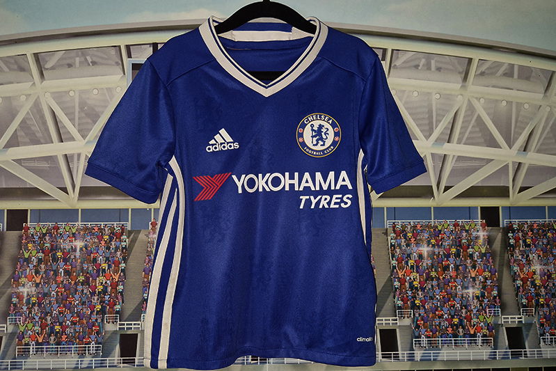 Piłkarska koszulka drużyny występującej w angielskiej Premier League – Chelsea F.C. (Chelsea Football Club), wyprodukowana przez koncern Adidas /Climalite/.