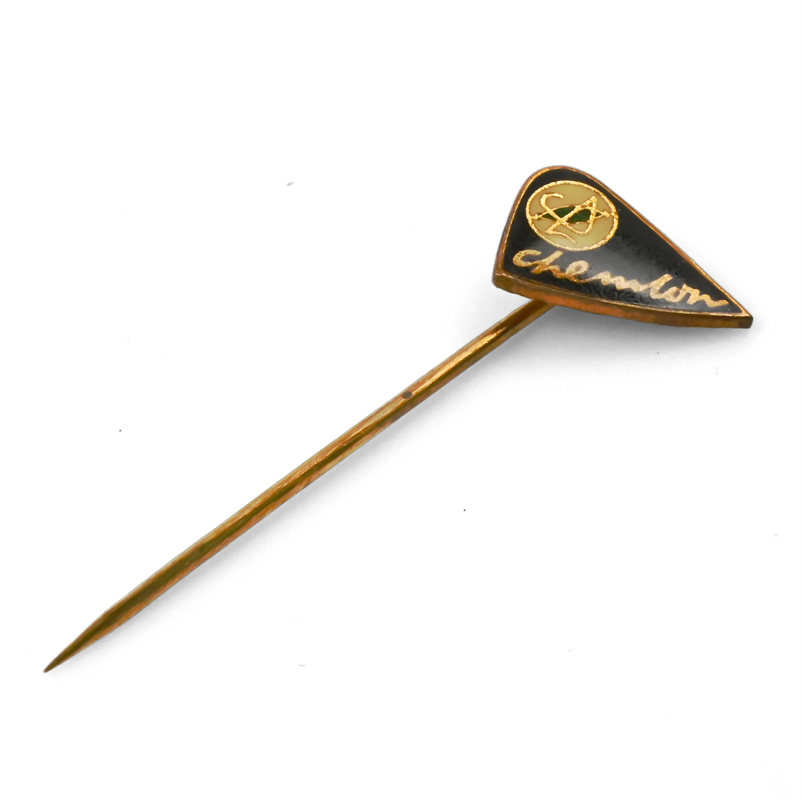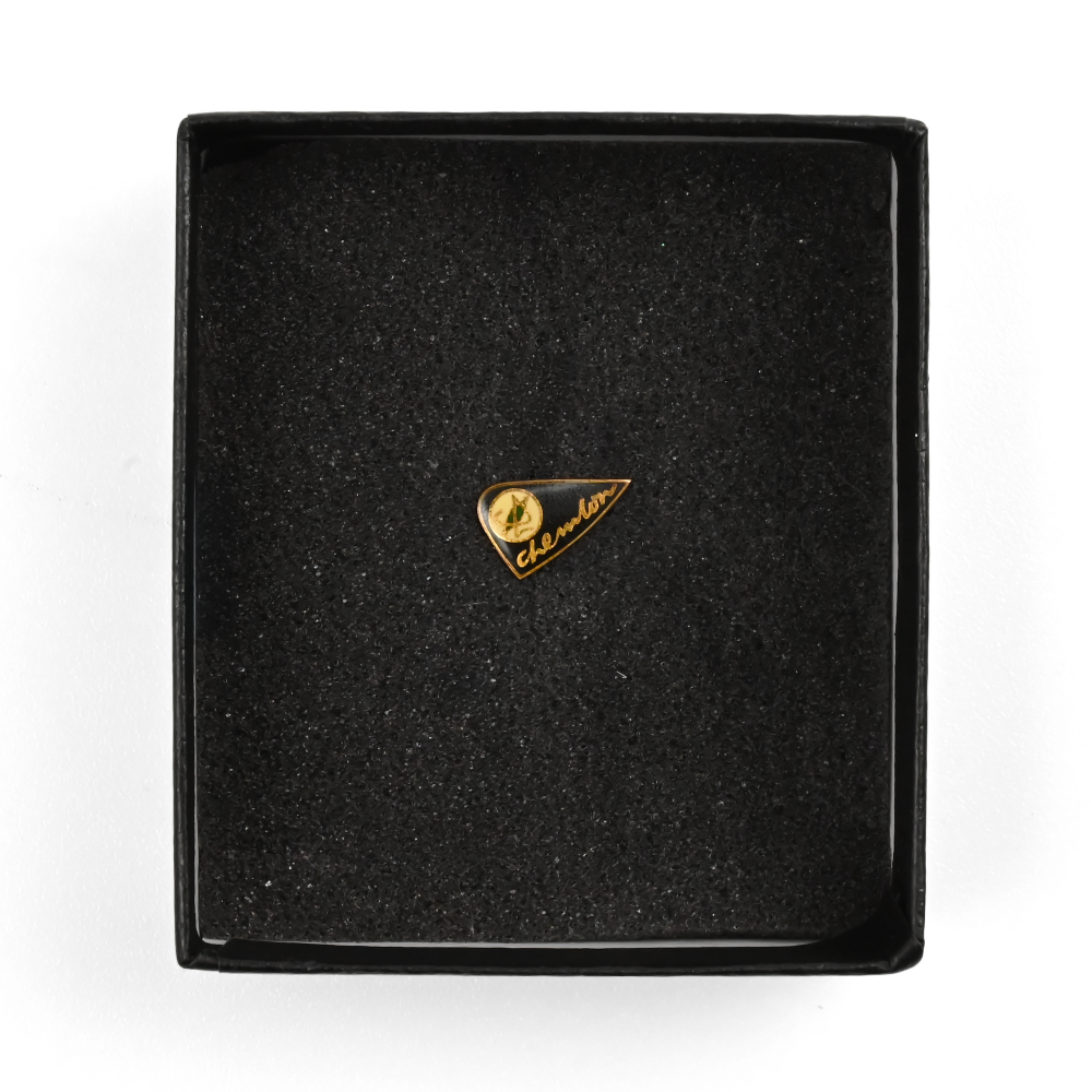 Odkryj wyjątkowy fragment czechosłowackiej historii przemysłowej dzięki tej vintage przypince "Chemlon"! Ta starannie wykonana trójkątna przypinka, wykonana ze złoconego metalu i czarnej emalii, ozdobiona jest napisem "Chemlon" w eleganckim kursywie oraz symbolem atomu, symbolizującym rozwój i innowacje w przemyśle chemicznym. Chemlon był wiodącym producentem włókien chemicznych w Czechosłowacji, specjalizującym się w poliamidzie i polipropylenie wykorzystywanym w odzieży i przemyśle. Przypinka ta prawdopodobnie była wręczana pracownikom jako oznaka uznania lub rozdawana na targach przemysłowych i wydarzeniach firmowych w latach 1960–1980. Dzięki klasycznemu zapięciu na szpilkę, ta przypinka to autentyczny kolekcjonerski skarb, idealny dla miłośników historii przemysłowej Europy Wschodniej, pamiątek z czasów Zimnej Wojny oraz kolekcjonerów związanych z chemią i przemysłem tekstylnym. Doskonały stan zachowania i klasyczny design czynią ją wyjątkowym dodatkiem do każdej kolekcji. Jeśli szukasz unikalnej pamiątki z minionej epoki lub wyjątkowego prezentu historycznego, ta oryginalna przypinka Chemlon to doskonały wybór!