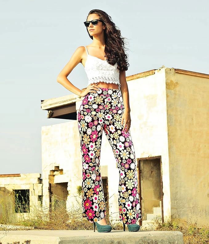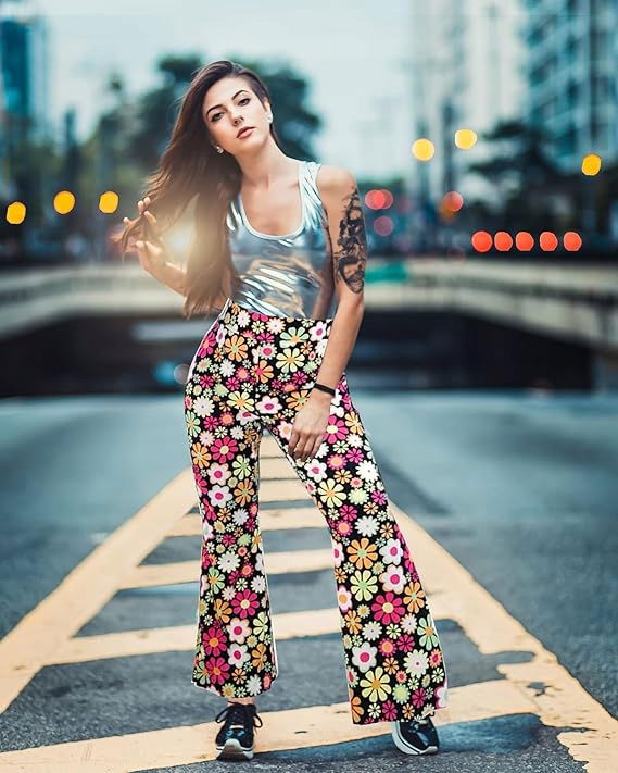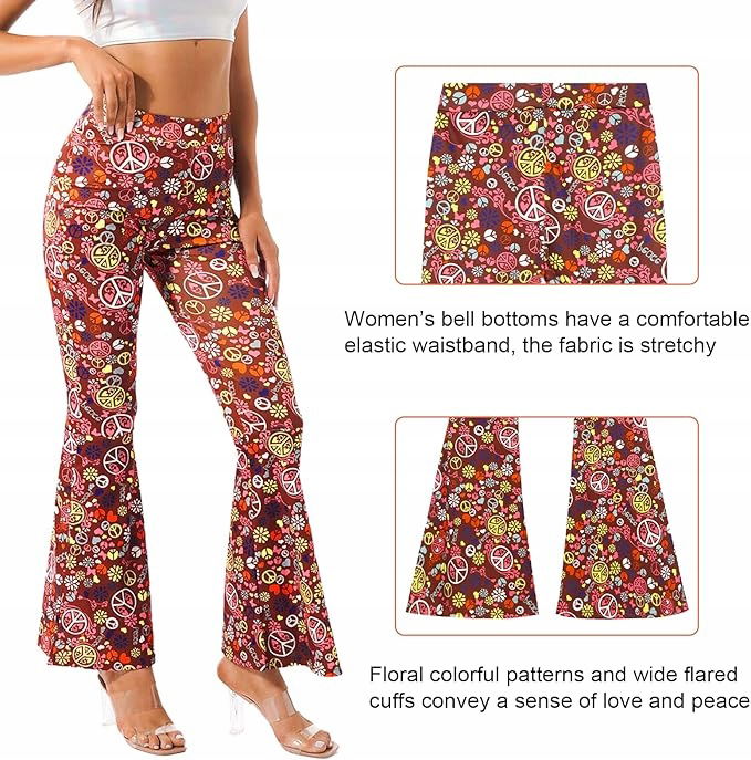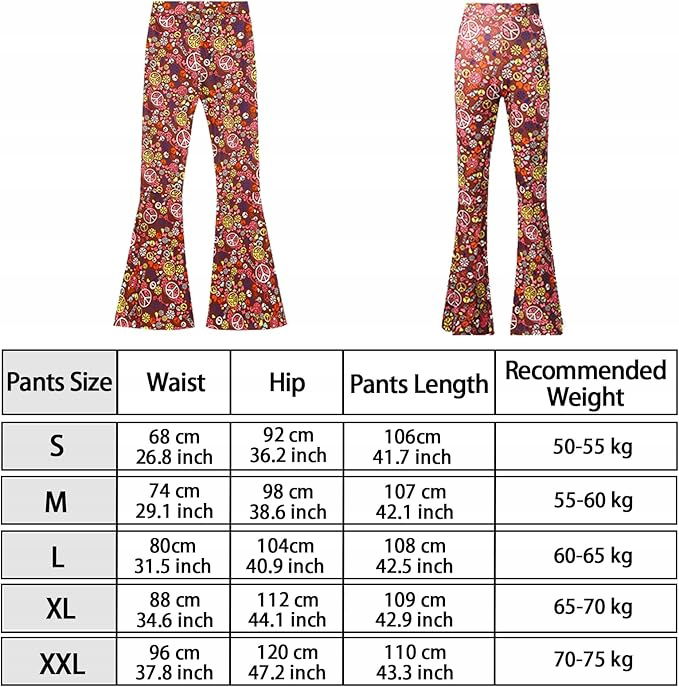 - Zestaw zawiera 1 sztukę damskich spodni disco flare, 1 opaskę na czoło dla kobiet, i 1 okulary przeciwsłoneczne. Ten hipisowski dodatek do kostiumu uzupełni Twój hipisowski wygląd na nadchodzące imprezy tematyczne z lat 60. lub 70. 80.