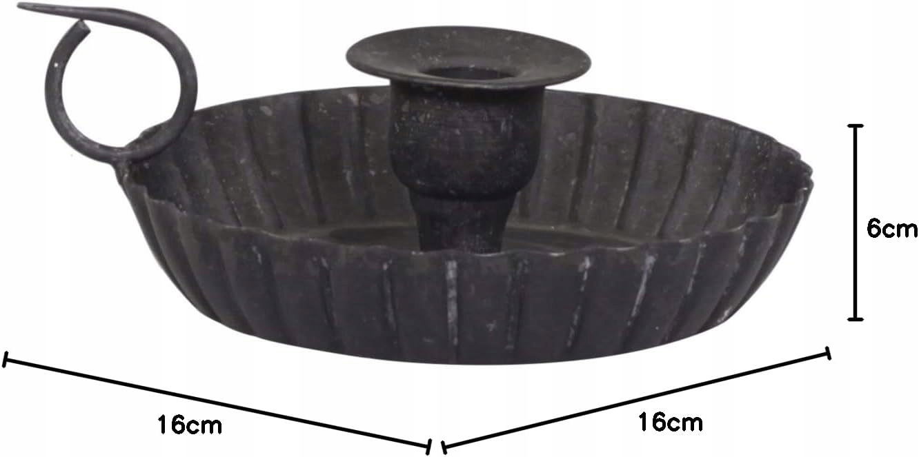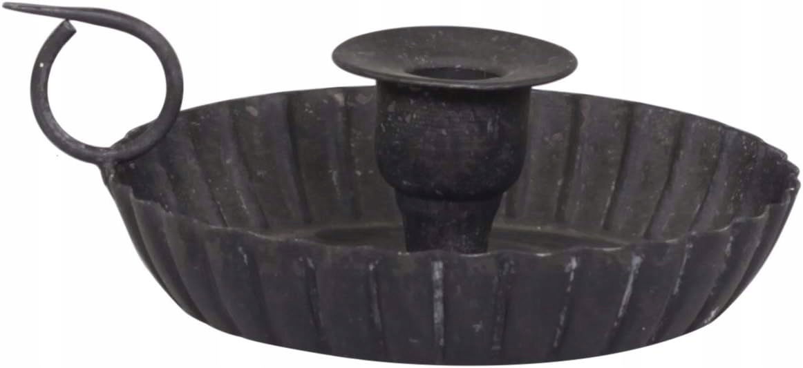 Elegancki świecznik metalowy w kolorze czarnym węgla, idealny do prostych świec. Jego nostalgiczny design w stylu wiejskim shabby vintage doskonale wkomponuje się w każde wnętrze, nadając mu wyjątkowego charakteru. Z uchwytem pierścieniowym pozwala na łatwe ustawienie świecy i skutecznie łapie krople wosku, co czyni go praktycznym elementem dekoracyjnym.