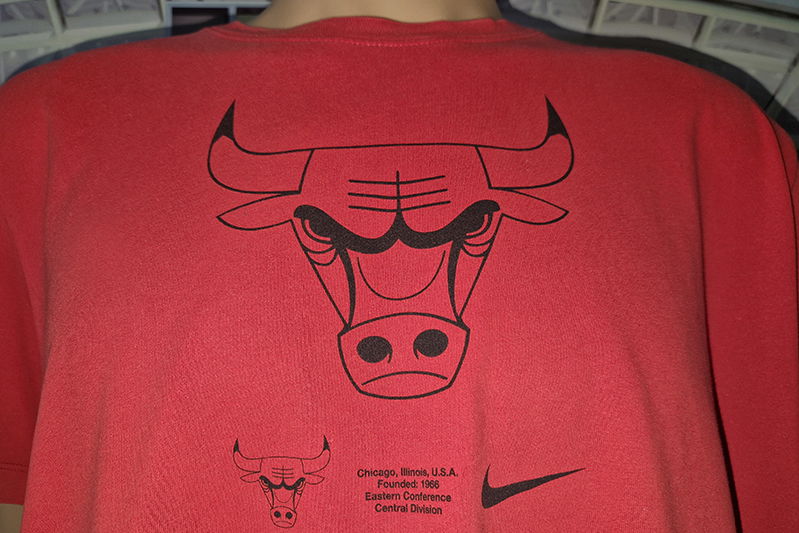 Bawełniano - poliestrowa koszulka (T-shirt), drużyny występującej w zawodowej lidze NBA (National Basketball Association) – Chicago Bulls, wyprodukowana przez koncern Nike DriFit (Tee).