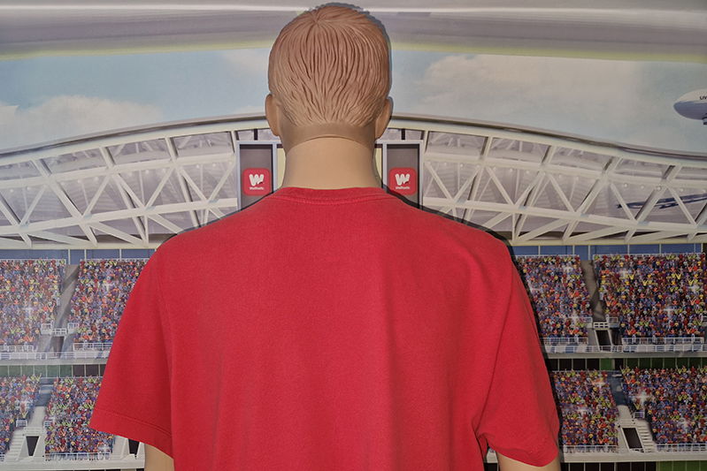 Koszulka posiada krótkie rękawki i dominuje w niej kolor czerwony wraz z czarno – białymi „dodatkami” zaś kołnierzyk jest okrągły.