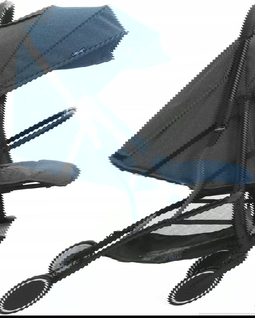Szerokie i wygodne siedzisko z wyściełanymi szelkami naramiennymi i wyściełanym paskiem w kroku. Aby zwiększyć zarówno funkcjonalność, jak i wygodę dziecka, podnóżek jest podtrzymywany przez element, który po złożeniu wózka służy do przenoszenia go.