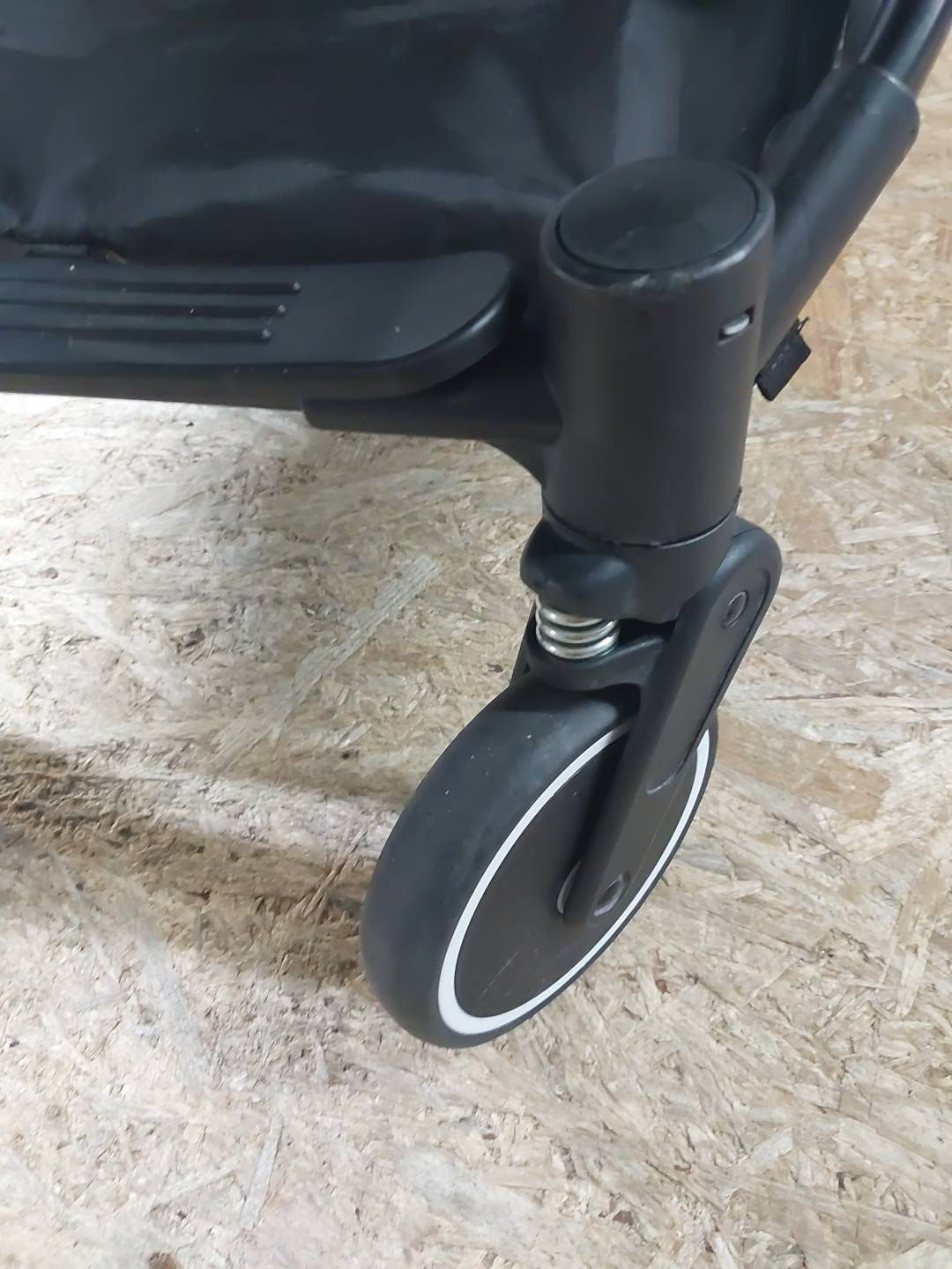 Szerokie i wygodne siedzisko z wyściełanymi szelkami naramiennymi i wyściełanym paskiem w kroku. Aby zwiększyć zarówno funkcjonalność, jak i wygodę dziecka, podnóżek jest podtrzymywany przez element, który po złożeniu wózka służy do przenoszenia go.
