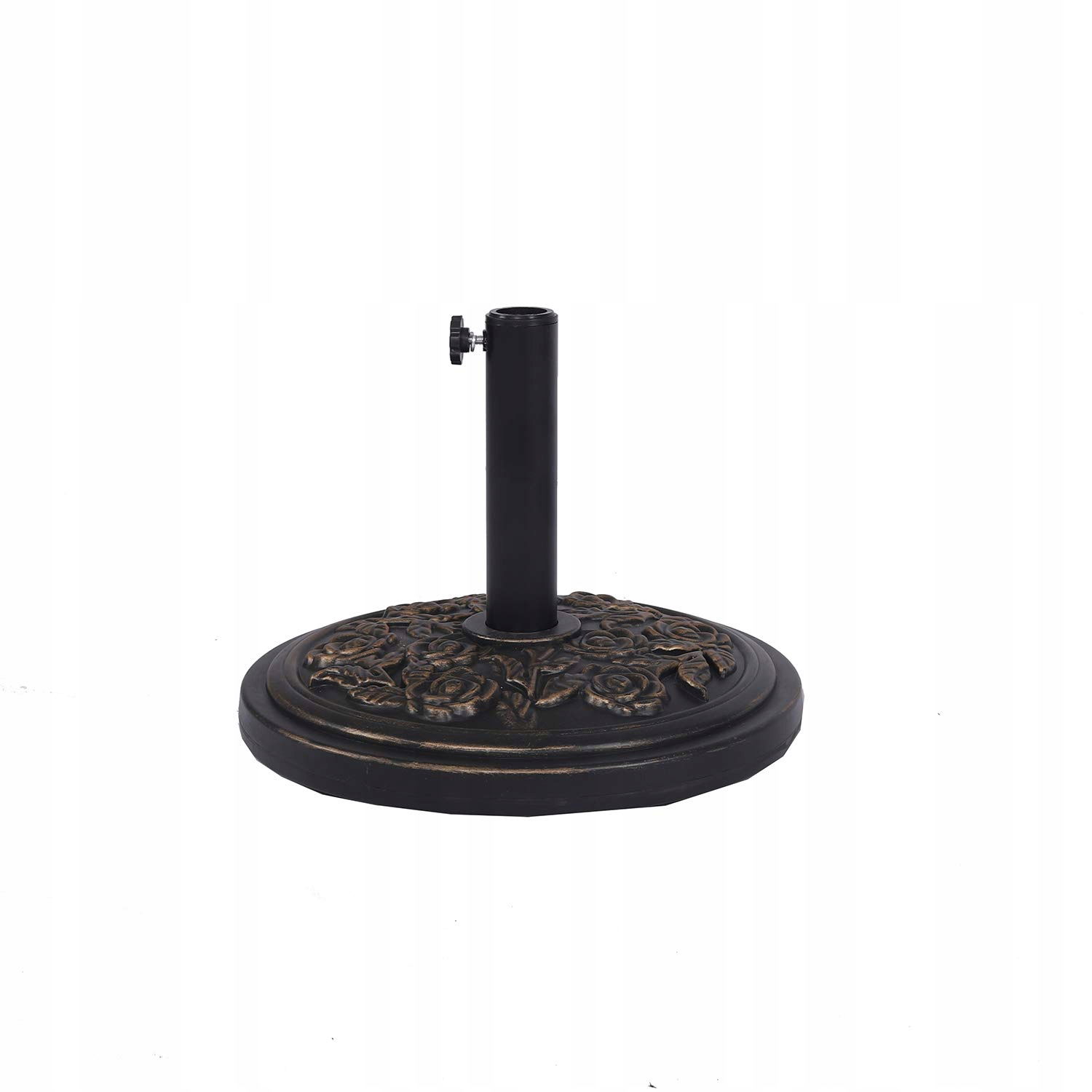 Waga całkowita: 12 kg. Wymiary: średnica 45 cm x 34 cm wys. Wysokość rury stalowej 25 cm. Wysoka jakość: stojak i uchwyt są stabilne i połączone ze sobą za pomocą gwintu. Stabilny i trwały – stojak na parasol przeciwsłoneczny jest wykonany ze stabilnego tworzywa sztucznego PE i jest wypełniony betonem. Trwały materiał jest wodoodporny i odporny na działanie promieni UV. Elastyczny: stojak na parasol przeciwsłoneczny pasuje do drążków parasoli przeciwsłonecznych o średnicy od 38 do 48 mm, z mocowaniem.