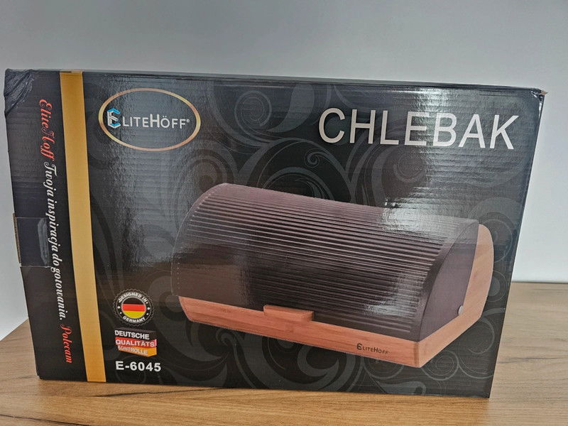 Chlebak bambusowy z metalową pokrywą. Chlebak jest nowy.