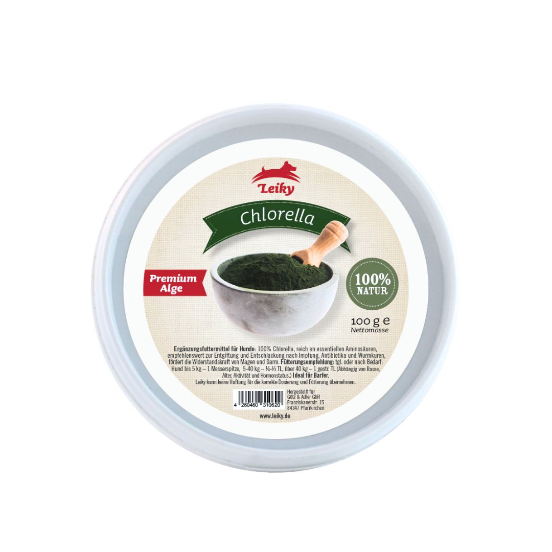 Chlorella 100g | suplement dla psa i kota | na zapalenie skóry i stawów | alergie | naturalna detoksykacja | Leiky