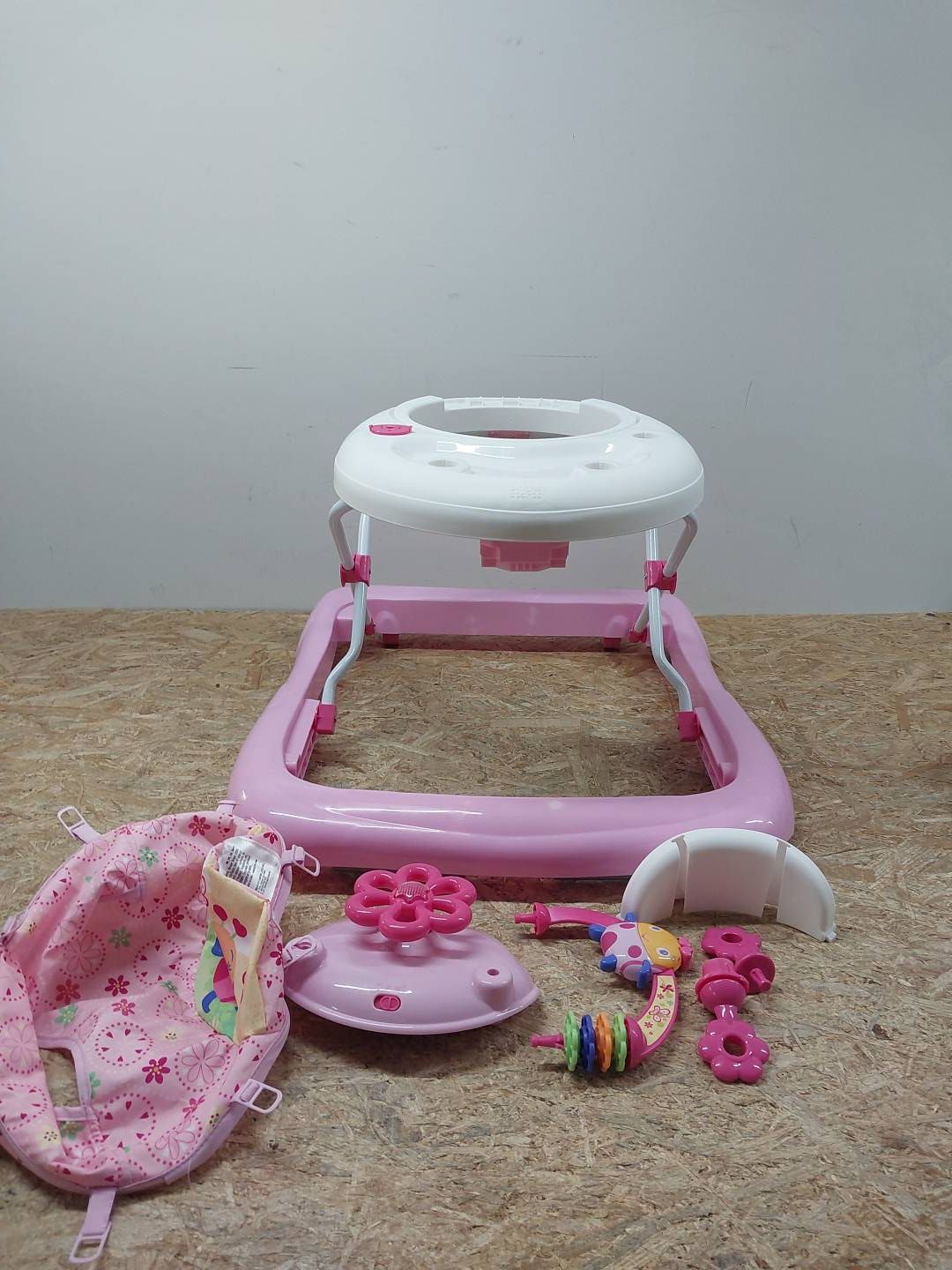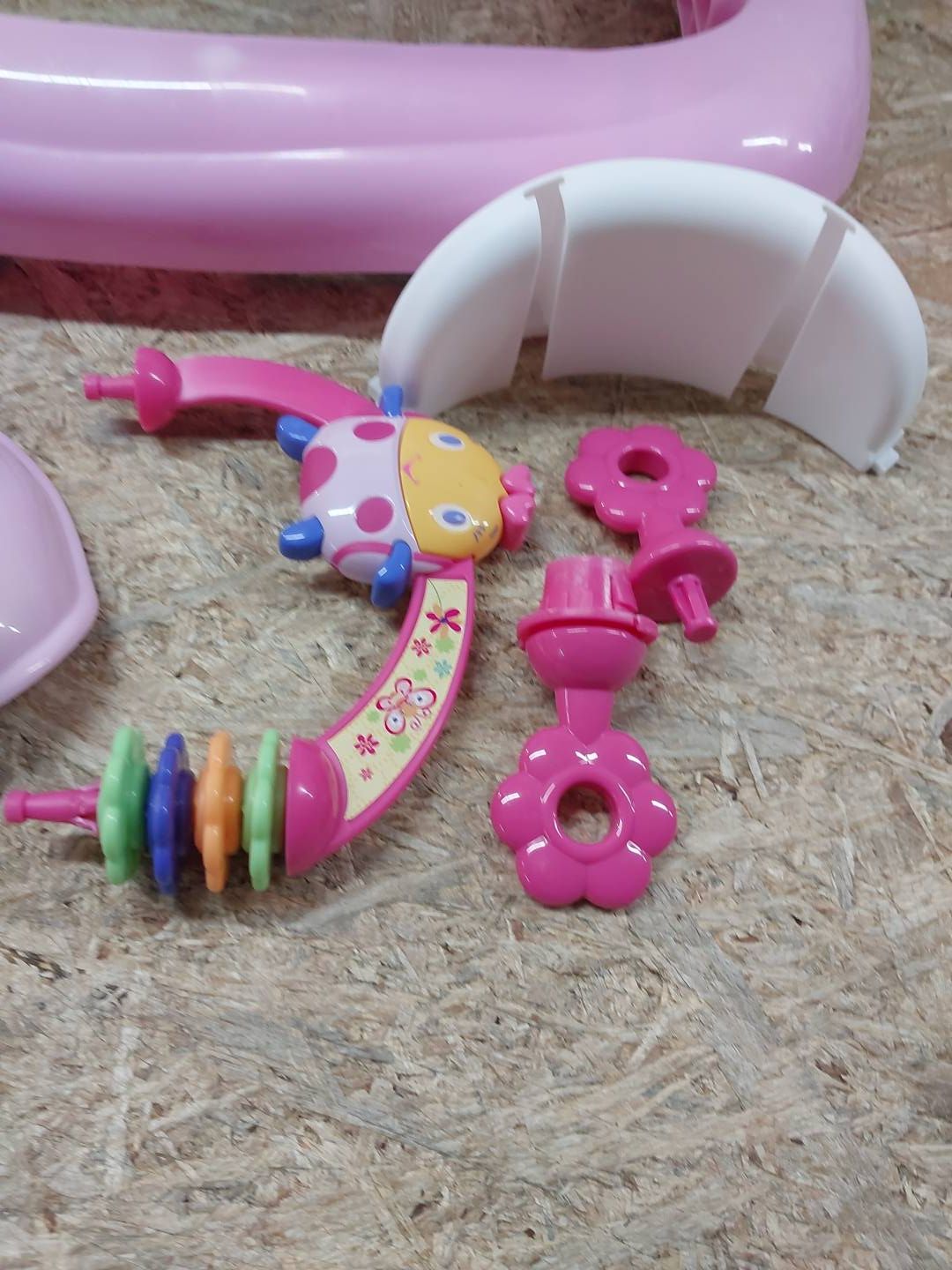 Interaktywny chodzik wyposażony w elementy grające, dodatkowo ściągany panel chodzika można w każdej chwili zdjąć aby dziecko mogło się pobawić nie siedząc w chodziku.