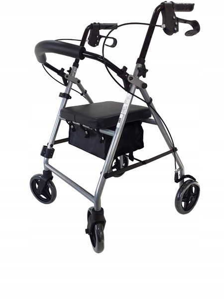 Stalowy chodzik czterokołowy sprawdzi się na dłuższe spacery dla osób z małymi ograniczeniami ruchowymi, samodzielnie utrzymującymi pozycję pionową. Posiada stabilne siedzisko oraz oparcie pozwalające na odpoczynek. Chodzik został wyposażony w praktyczną torbę na drobiazgi czy zakupy, a przemyślana i prosta konstrukcja sprawi, że będziesz cieszył się nim długie lata.