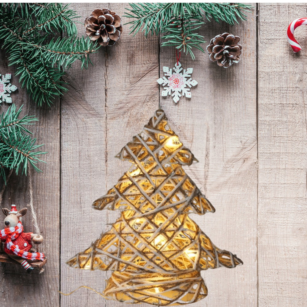- Czarujący design: Ręcznie tkane gałązki i metalowa rama w kształcie choinki tworzą wyjątkowy, artystyczny wygląd.