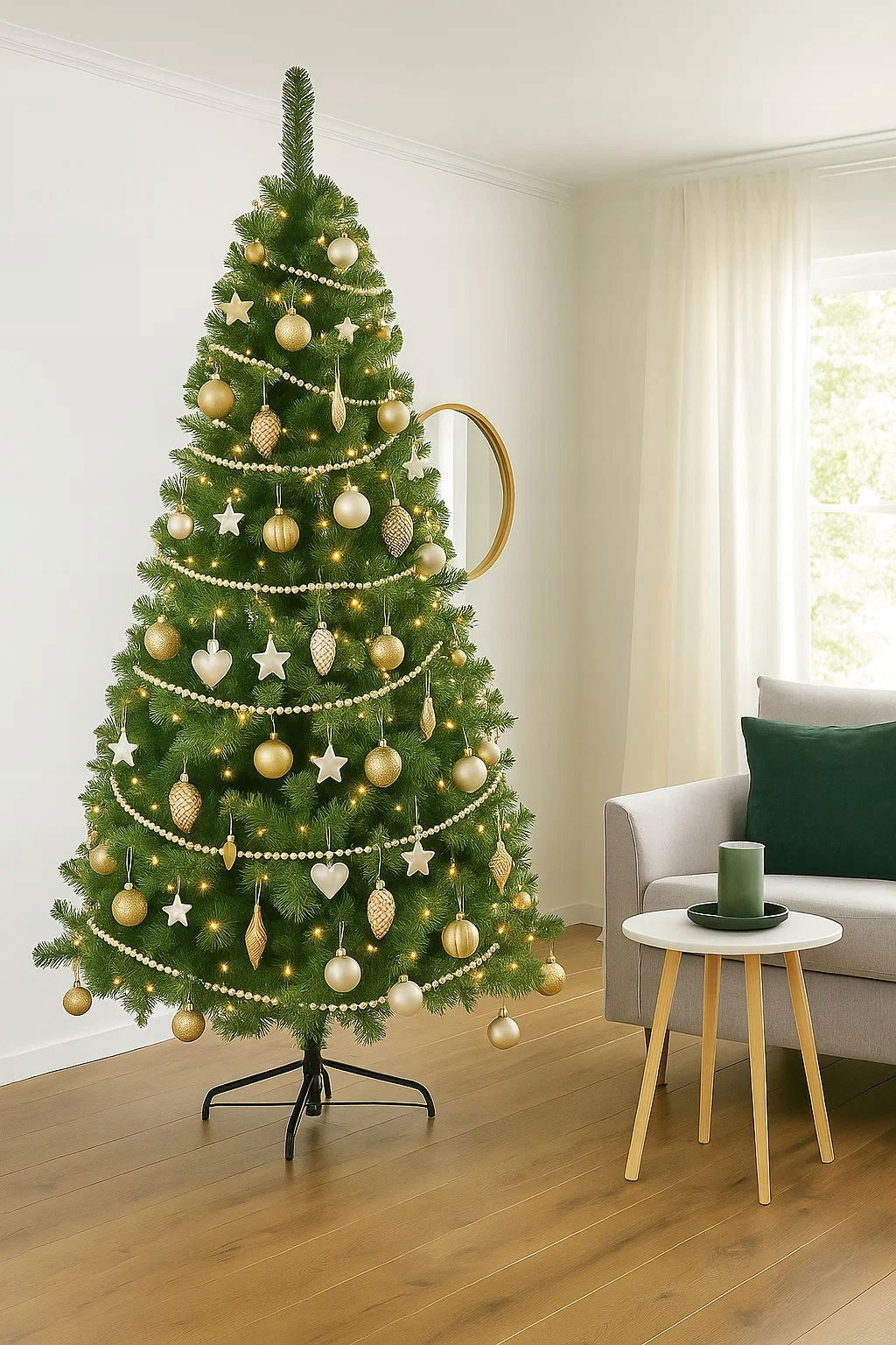 ✅Większość modeli 210 cm ma jedynie 100–115 cm szerokości – model TODOMI oferuje aż 130 cm, co daje pełniejszy, bogatszy i bardziej naturalny efekt wizualny. Idealna do salonu i centralnej aranżacji świątecznej.