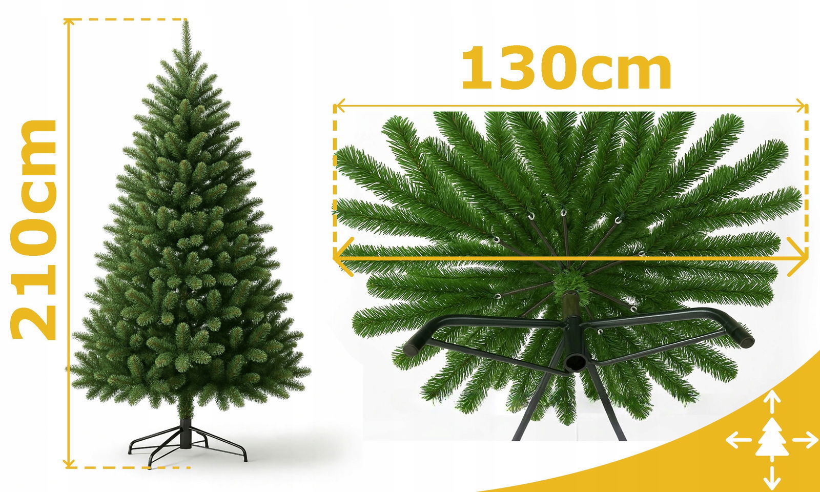 ⭐️Większość tańszych choinek 210 cm ma zaledwie ok. 100 cm szerokości, podczas gdy nasza ma aż 130 cm – dzięki temu wygląda znacznie pełniej, gęściej i bardziej naturalnie.