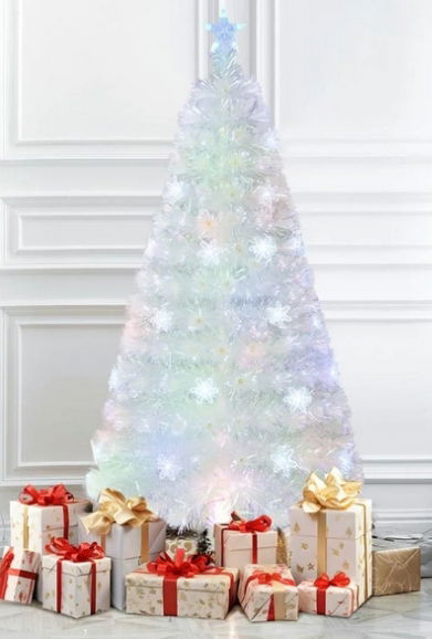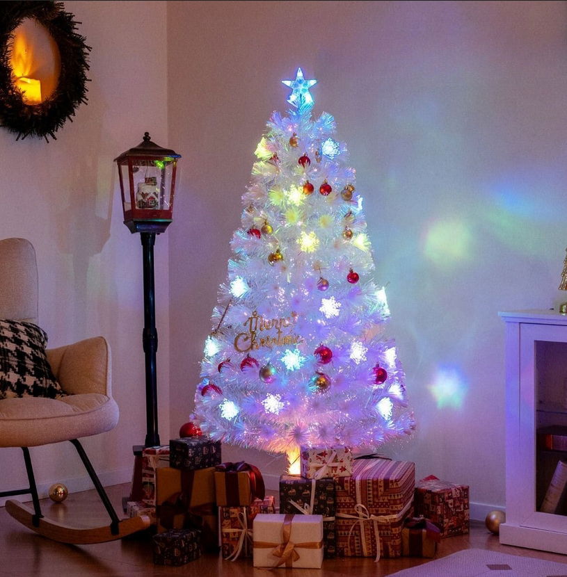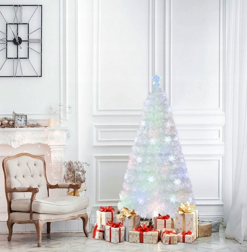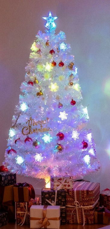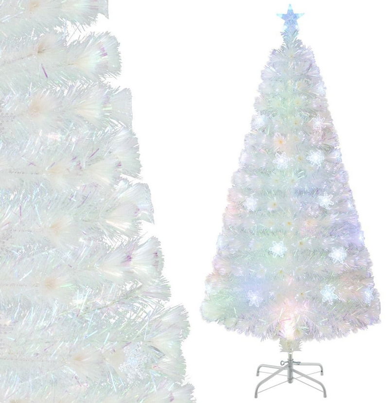 Ta wyjątkowa biała choinka z gęstymi gałęziami, opalizującymi igłami oraz wielokolorowymi światełkami LED, dodatkowo ozdoby w kształcie płatków śniegu, co wprowadzi do Twojego wnętrza niepowtarzalny, zimowy klimat. Dzięki wysokiej jakości materiałom i solidnej konstrukcji będzie cieszyć swoim urokiem przez wiele lat!