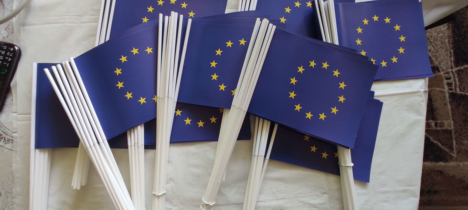 Zestaw do samodzielnego wykonania 100 chorągiewek Unii Europejskiej.