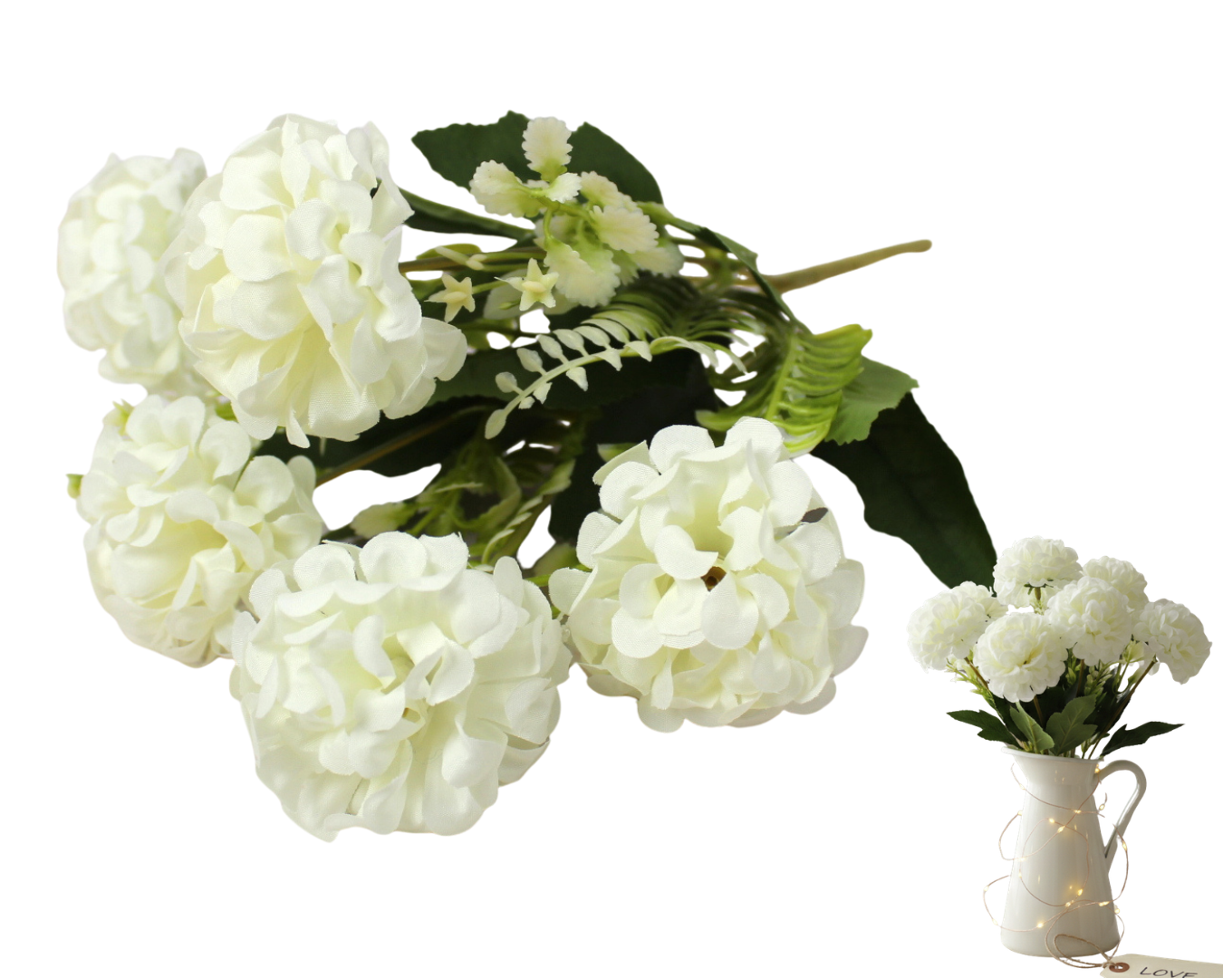 Chryzantemy Sztuczny Bukiet Białych Chryzantem 30 Cm 5 Kwiatów Na Cmentarz