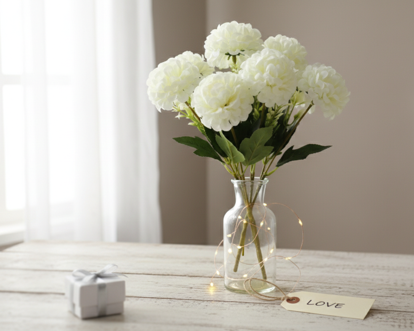 - Uniwersalny Kolor: Biel chryzantem jest ponadczasowa – pasuje zarówno do radosnych dekoracji domowych, jak i do podniosłych kompozycji okolicznościowych.