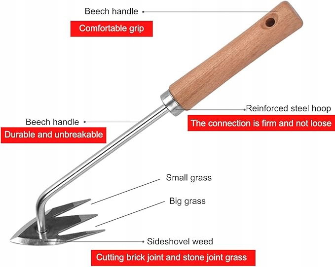 Ten 3-zębowy chwastownik ogrodowy z ergonomiczną, rączką to skuteczny sposób na szybkie i wygodne usuwanie chwastów. Idealny zarówno do ogrodu przydomowego, jak i na działkę.