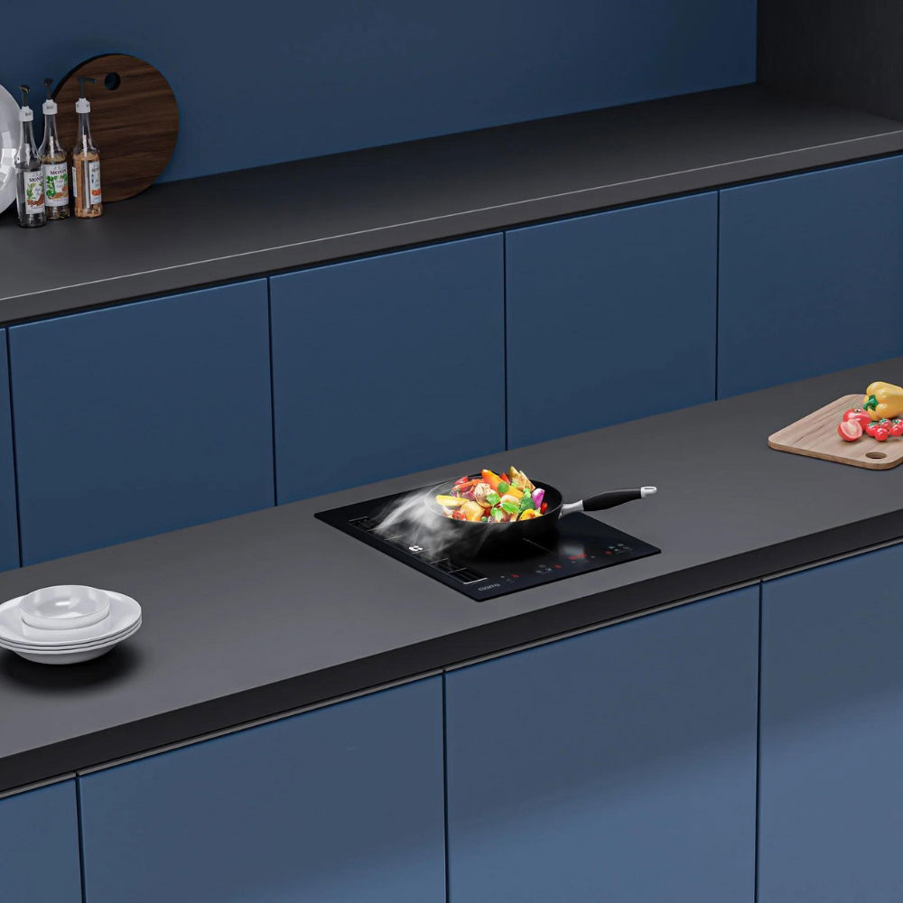 Płyta indukcyjna Ciarra ONE 39 cm to idealne rozwiązanie dla osób, które chcą zaoszczędzić miejsce, nie rezygnując przy tym z funkcjonalności. Urządzenie łączy w sobie dwie kluczowe funkcje: gotowanie i ekstrakcję powietrza. Dzięki temu możesz cieszyć się czystym i świeżym powietrzem w swojej kuchni, niezależnie od tego, co gotujesz.