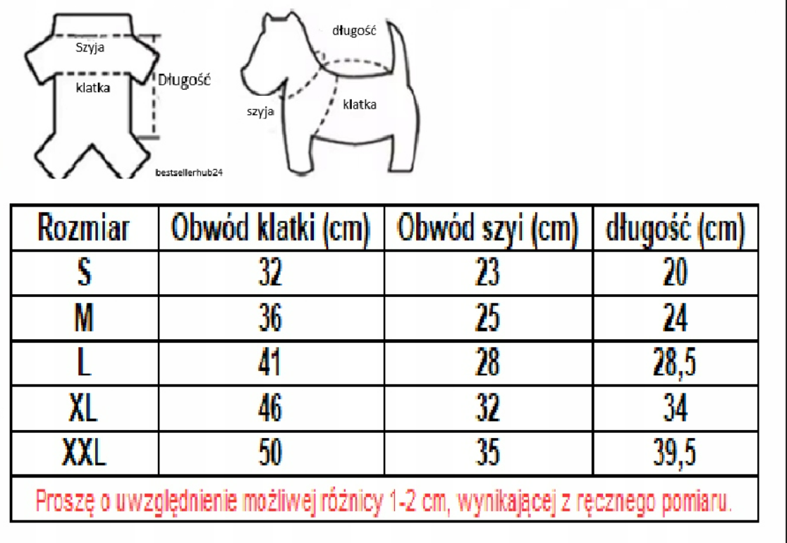 ⚠️ Uwaga: Ze względu na ręczne pomiary, możliwa jest różnica 1-2 cm.