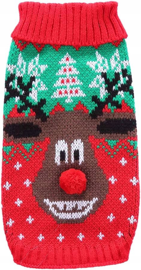 Sweter dla psa z czerwonym noskiem, Sweter na Boże Narodzenie dla psów i kotów, sweter z reniferem, ciepłe ubranie na święta/zimę (rozmiar L).