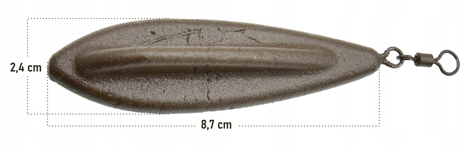 Ciężarek stworzony dla karpiarzy. Nadaje się na średnie i duże dystanse, wyposażony w krętlik ułatwiający mocowanie.