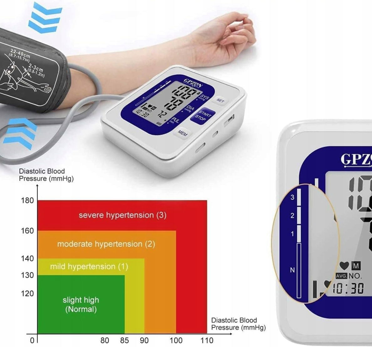 GPZON to elektroniczny, profesjonalny ciśnieniomierz naramienny, który łączy precyzyjny pomiar, dużą pamięć wyników i łatwą obsługę. Idealny dla osób, które chcą świadomie kontrolować ciśnienie – bez stresu i bez wizyt w przychodni.