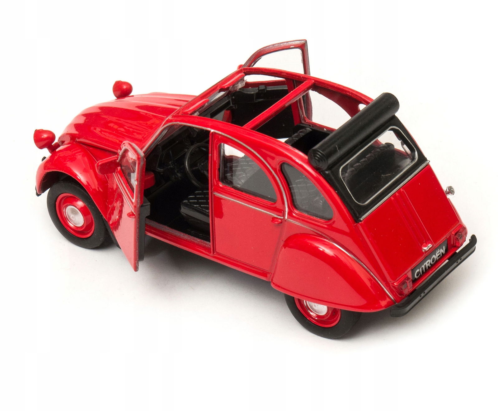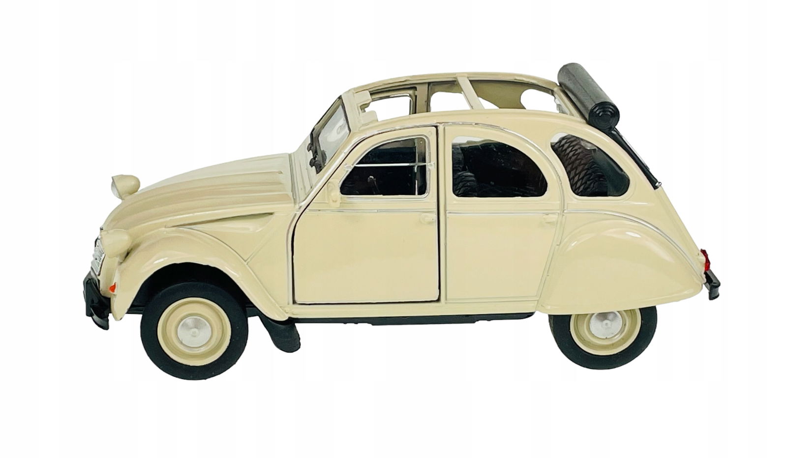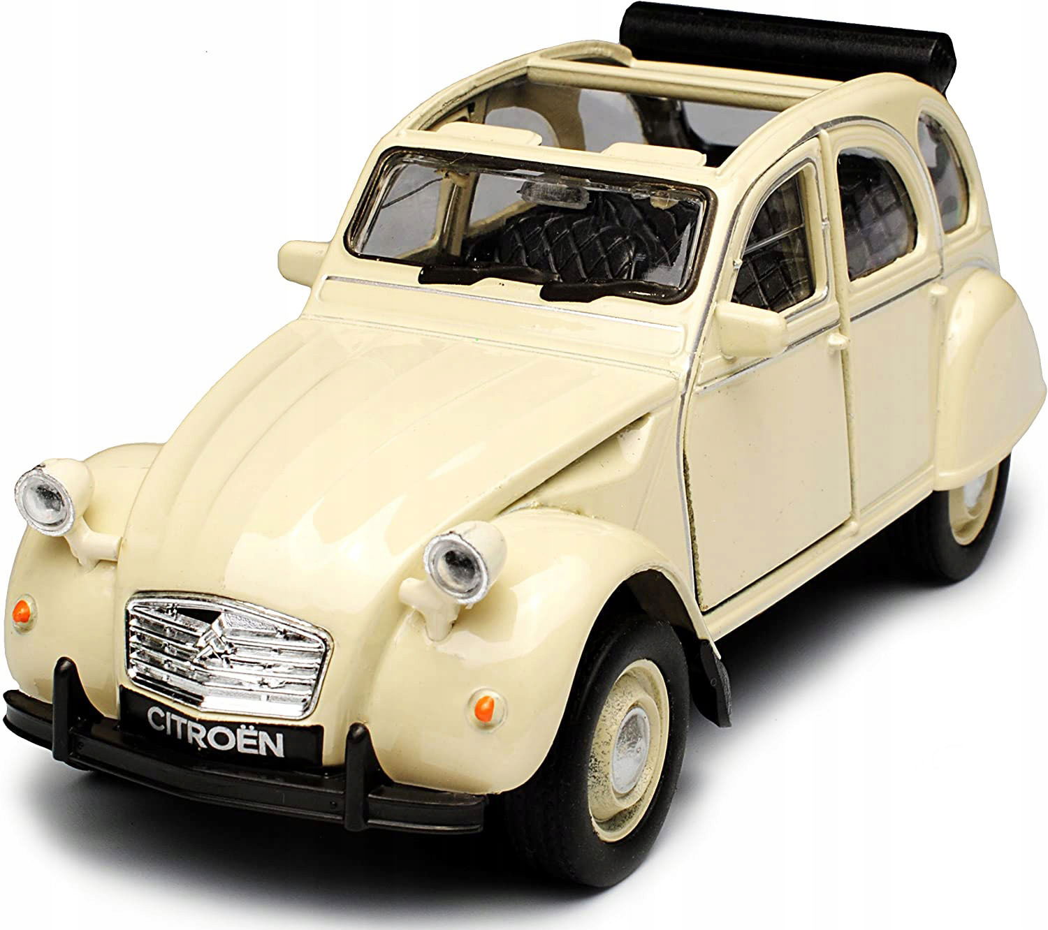 Fantastyczne autko Citroen 2CV spodoba się każdemu miłośnikowi pojazdów Welly. Citroen 2CV to pojazd wykonany z metalu z dodatkiem plastiku. Samochód ma otwierane drzwi, gumowe opony, wykończone wnętrze i metalową karoserię. Malowany specjalną farbą stosowaną w koncernach samochodowych. Wspaniały model kolekcjonerski może stać w pudełku za witryną albo być wspaniałą zabawką.