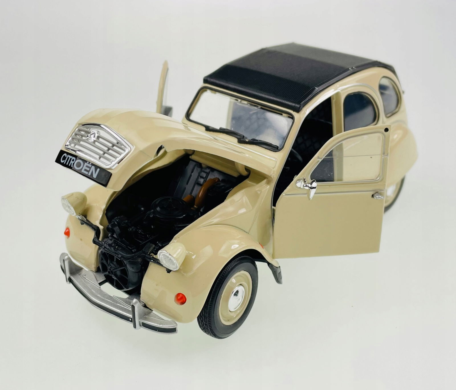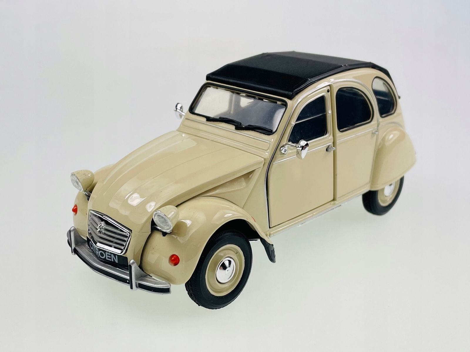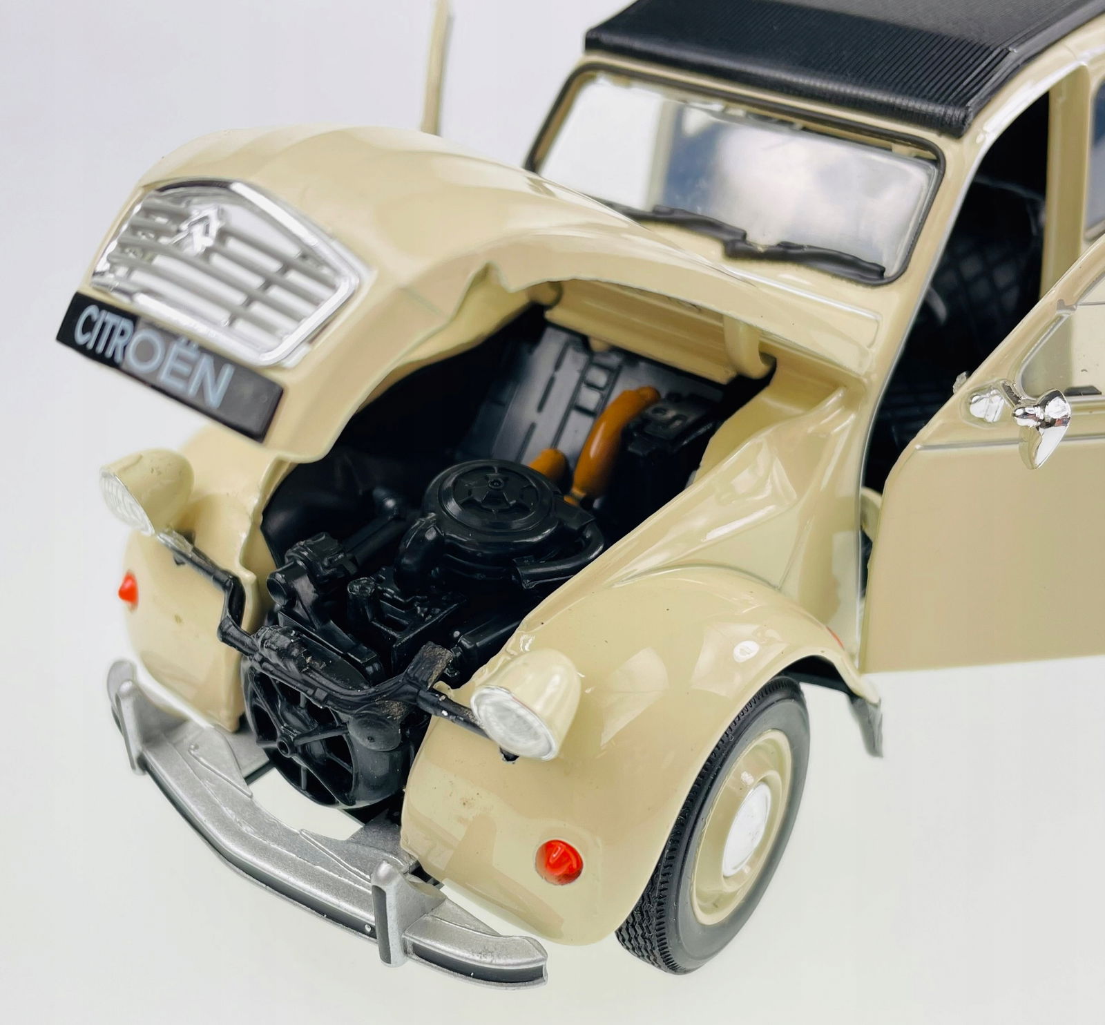 Fantastyczne autko Citroen 2CV spodoba się każdemu miłośnikowi pojazdów Welly. Citroen 2CV to pojazd wykonany z metalu z dodatkiem plastiku. Samochód ma otwierane drzwi, gumowe opony, wykończone wnętrze i metalową karoserię. Malowany specjalną farbą stosowaną w koncernach samochodowych. Wspaniały model kolekcjonerski może stać w pudełku za witryną albo być wspaniałą zabawką.