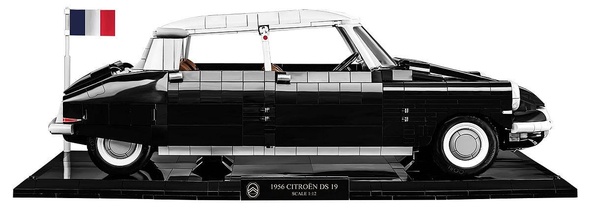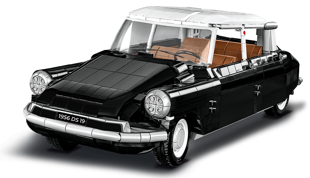 Citroën DS 19 to luksusowy samochód osobowy, który został zaprezentowany w 1955 roku, Pozostawał w produkcji aż do roku 1975. Jego premiera wzbudziła ogromne zainteresowanie ze względu na innowacyjne rozwiązania techniczne i nowoczesny design. DS 19 był znany z unikalnego wyglądu, charakteryzującego się smukłą sylwetką, opływowymi liniami i chromowanymi akcentami. Citroën DS 19 był samochodem, którym często podróżował ceniący kontakt z ludźmi Charles de Gaulle, francuski prezydent w latach 1959-1969. DS 19 był idealnym pojazdem dyplomatycznym, oferując dużą przestrzeń w kabinie pasażerskiej oraz wygodne siedzenia tapicerowane skórą. Citroën DS 19 jako samochód prezydencki symbolizował zarówno francuską elegancję, jak i technologiczną nowoczesność. Jego obecność na drogach stanowiła wyraz prestiżu i siły francuskiego państwa.Prezydencki Citroen DS 19 zasłynął na całym świecie dzięki doskonałym właściwościom jezdnym. Podczas zamachu na prezydenta de Gaulle napastnicy zniszczyli dwie opony! Pomimo to kierowca zachował kontrolę nad pojazdem i zdołał uciec zamachowcom! Nikt nie odniósł obrażeń! Dzisiaj Citroën DS 19, którym jeździł prezydent De Gaulle, pozostaje ważnym elementem francuskiej historii motoryzacji i świadectwem bliskiego związku między polityką a światem samochodów.Klockowy model EXECUTIVE EDITION nawiązuje do słynnego samochodu prezydenta Charlesa de Gaulle i śmiało mierzy się z ikoną francuskiej motoryzacji! Dzięki dużej skali 1:12 oraz wykorzystaniu ponad 2400 elementów udało nam się wiernie odtworzyć charakterystyczny kształt tego niezwykłego samochodu. Po zbudowaniu auto osiąga imponujący rozmiar 40 cm długości. Model zawiera liczne detale wzbogacone wysokiej jakości, trwałymi nadrukami. Specjalnie na potrzeby budowy tego zestawu opracowaliśmy zupełnie nowe wzory klocków, takie jak charakterystyczna szyba przednia! Odkrywaj piękne wnętrze, deskę rozdzielczą, działającą kierownicę i skrętne koła. Samochód został wyposażony w otwierane drzwi oraz bagażnik. Pod klapą znajduje się odtworzony z klocków, bogaty w detale silnik. Ekskluzywne wydanie EXECUTIVE EDITION charakteryzuje się czarnym kolorem karoserii i białym dachem. Do zestawu dołączona jest klockowa podstawka ekspozycyjna z miejscem do wpięcia tabliczki zawierającej nazwę modelu. W zestawie znajduje się również klockowy maszt wraz z francuską flagą, którą można przyczepić do podstawki ekspozycyjnej. Model jest idealny dla kolekcjonerów oraz miłośników klasycznej motoryzacji. Czytelna i intuicyjna instrukcja oraz klocki zapakowane w numerowane woreczki sprawiają, że proces budowy przebiega w sposób sprawny i satysfakcjonujący. Zbuduj to!