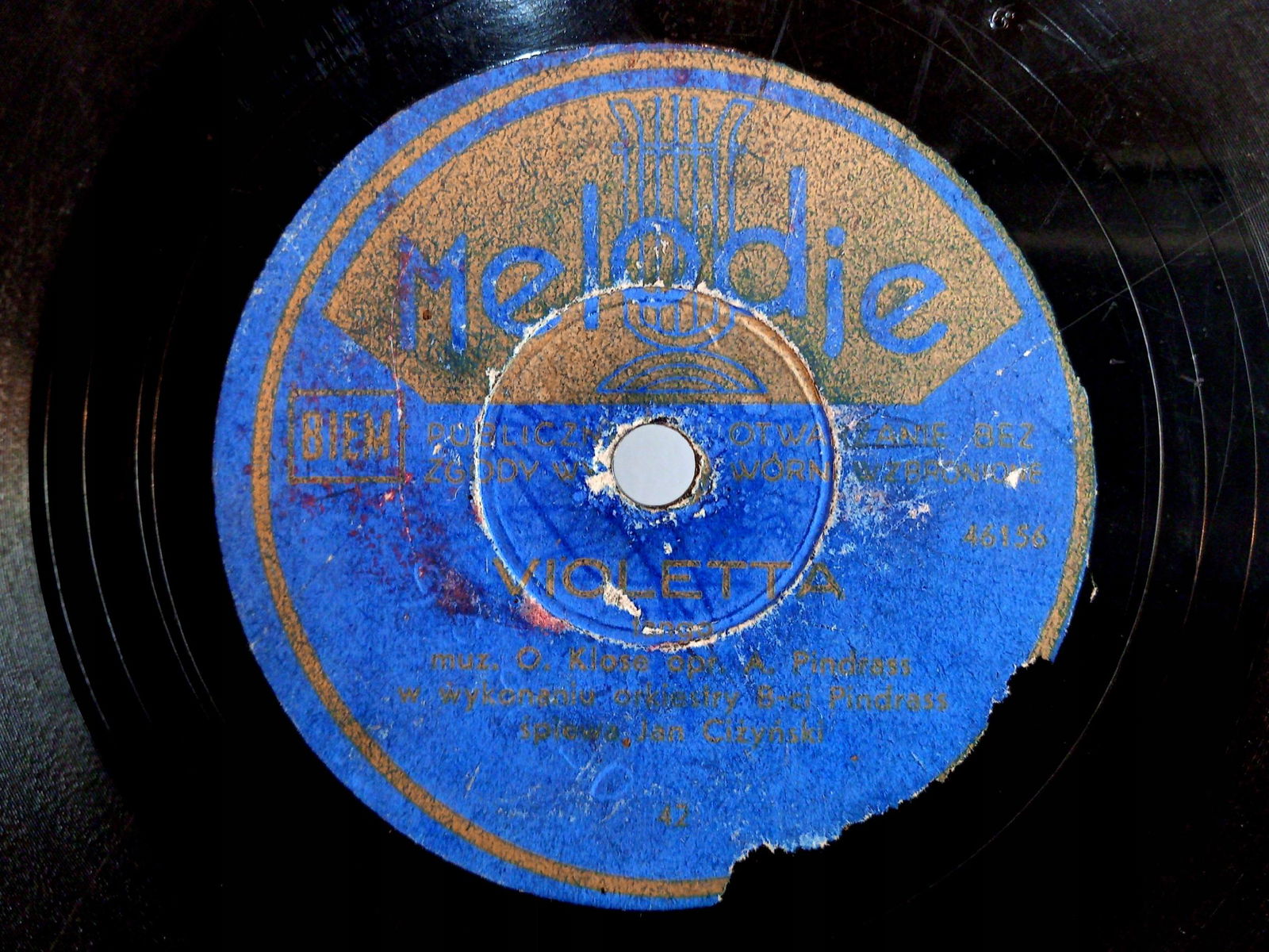 - płyty: szelak to specyficzny nośnik, dlatego zapraszamy do obejrzenia zdjęć i filmu z nagraniem dźwięku z płyty, link do filmu: